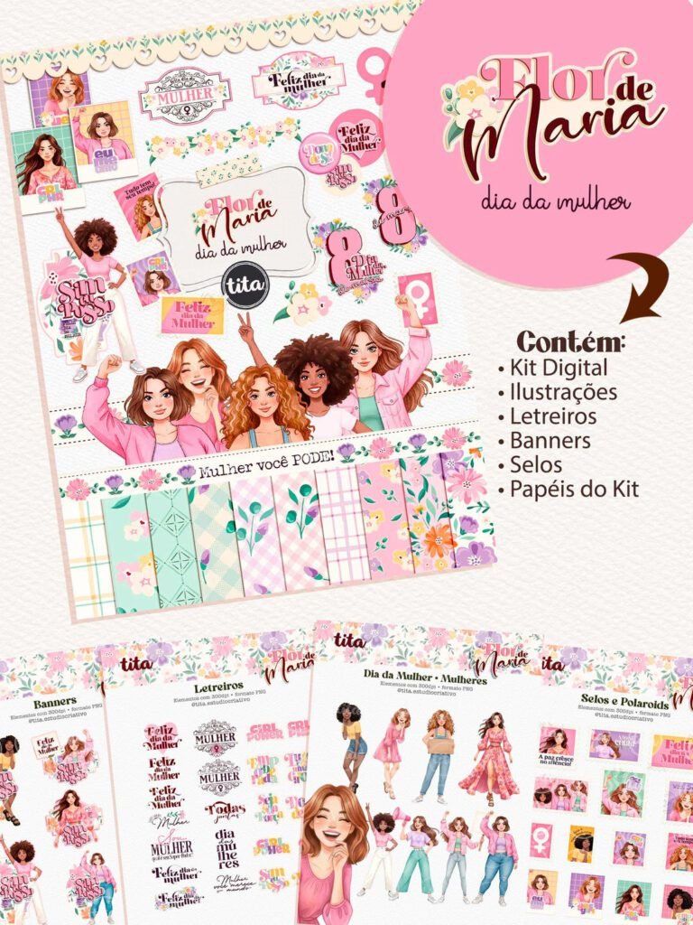 Kit Printables Completo + Img e Fundos – Dia da Mulher 2026 (Telma Contel)