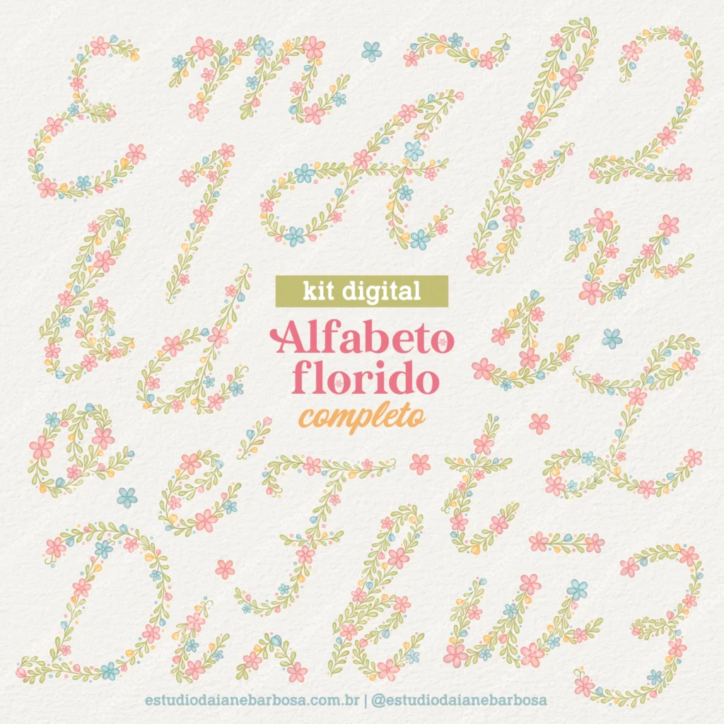 Alfabeto Florido – COMPLETO – Clip arts em Aquarela – Kit Digital