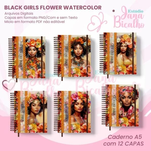 Caderno Universitário – Black Girls Flower Watercolor (Jana Bicalho)