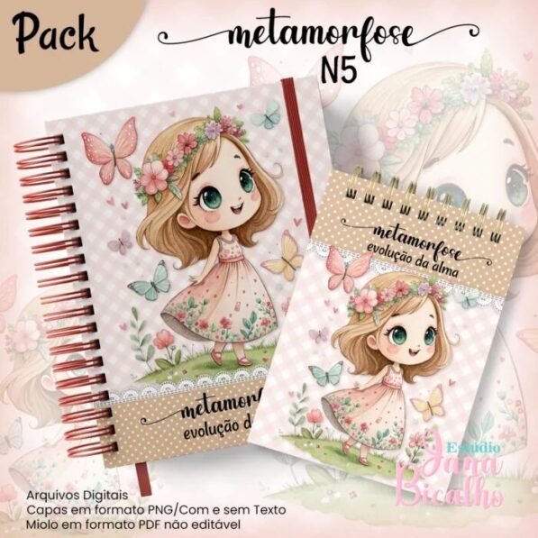Caderno A5 + Bloquinho – Metamorfose N3 (Jana Bicalho)