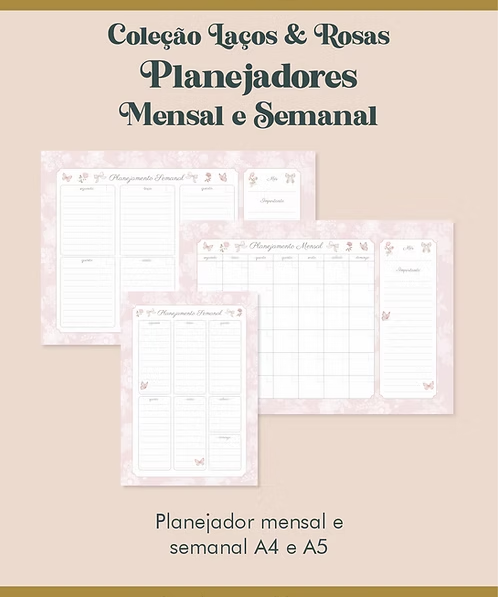 Planejadores Mensal e Semanal Coleção Laços & Rosas