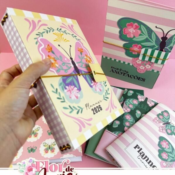 Borboleta Floral – Mini Agendas Horizontais A6 – 2026 (Pamella)
