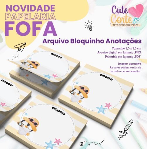 Bloquinho – 95x95mm – Pinguim – Papelaria Fofa