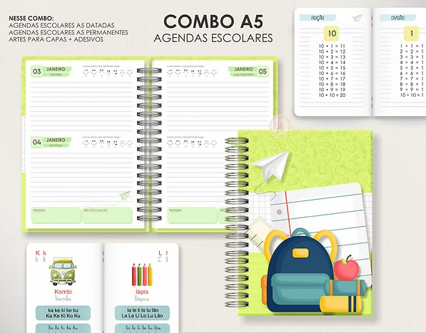 COMBO A5 – Agendas Escolares (Moldes da Lê)