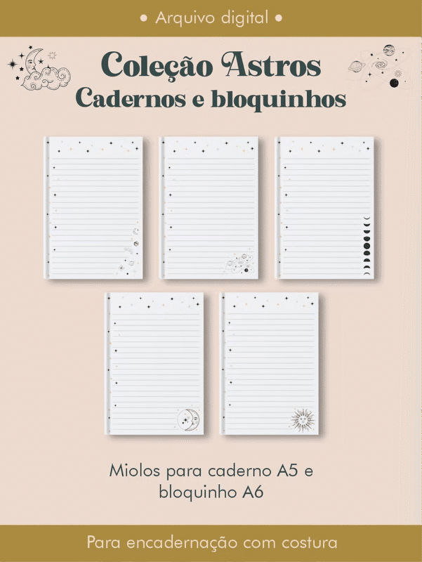 Caderno e bloquinho Costura Coleção Astros (Perfeito Miolo) R$ 25,00O preço original era: R$ 25,00.R$ 2,90O preço atual é: R$ 2,90. -