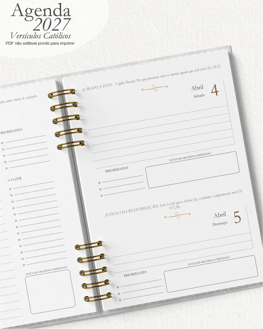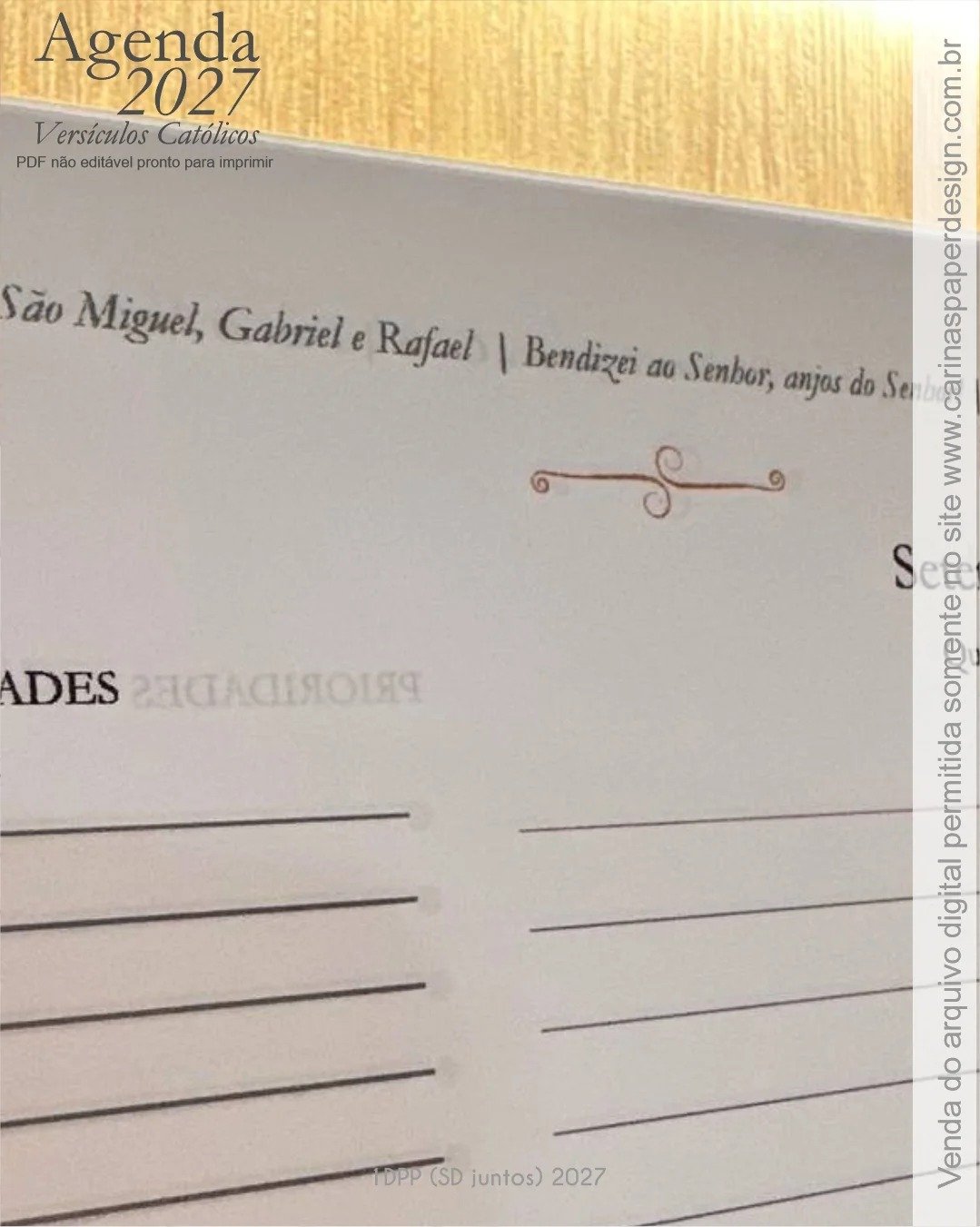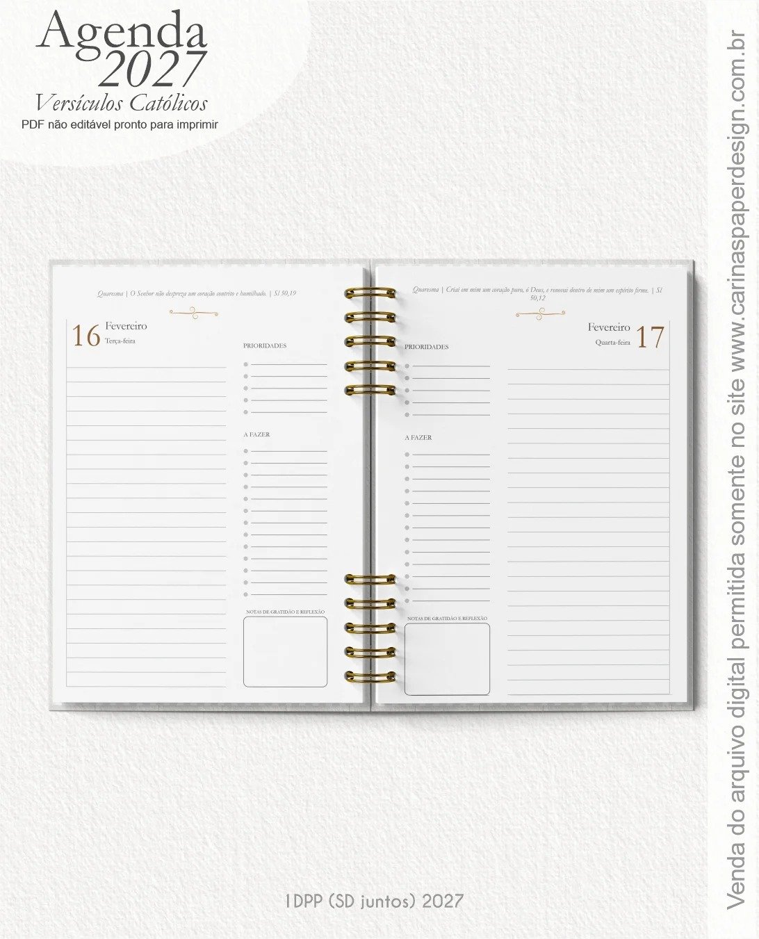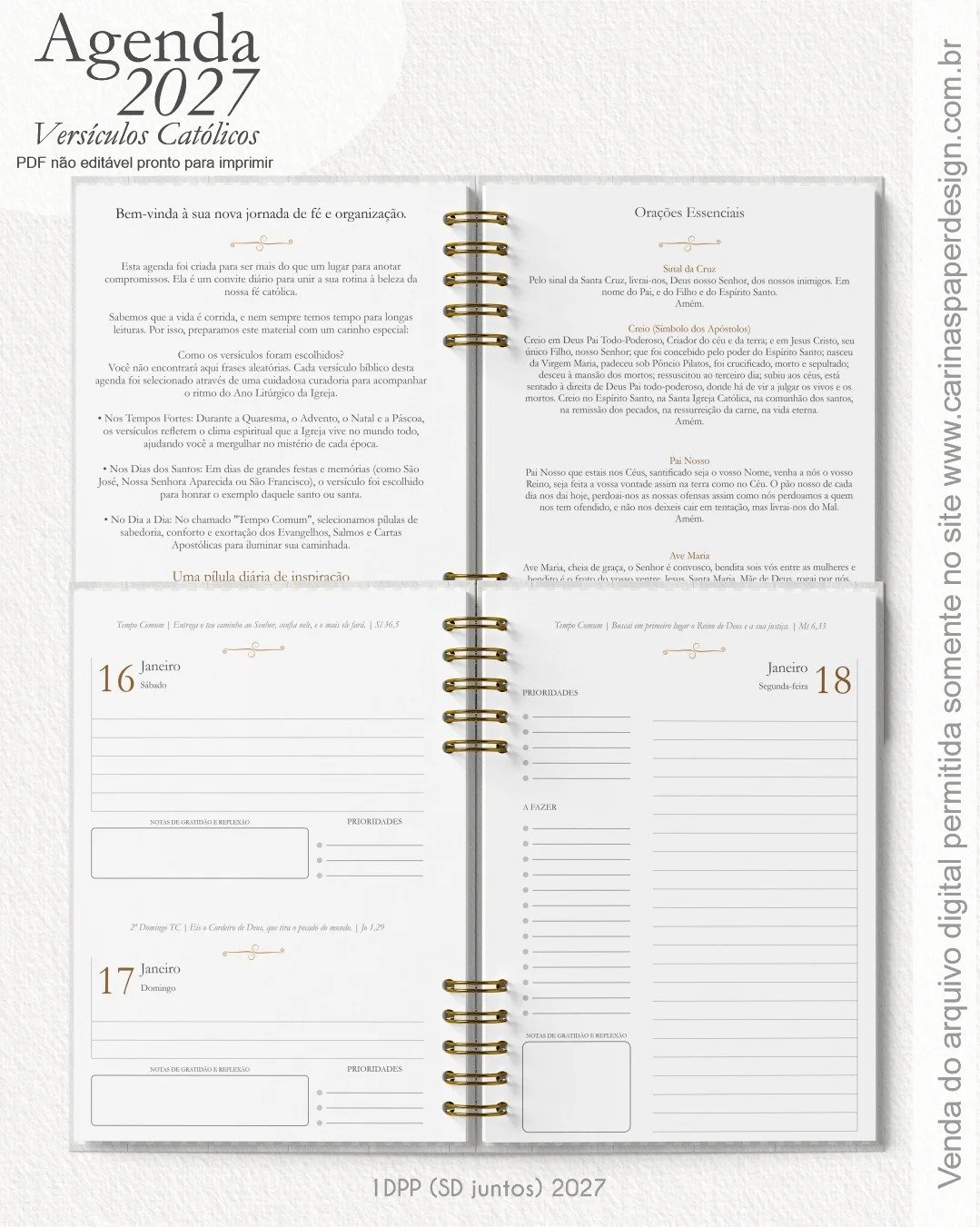 1 miolo de Agenda datada 2027 com versículos católicos PDF não editável com 336 páginas (168 folhas)