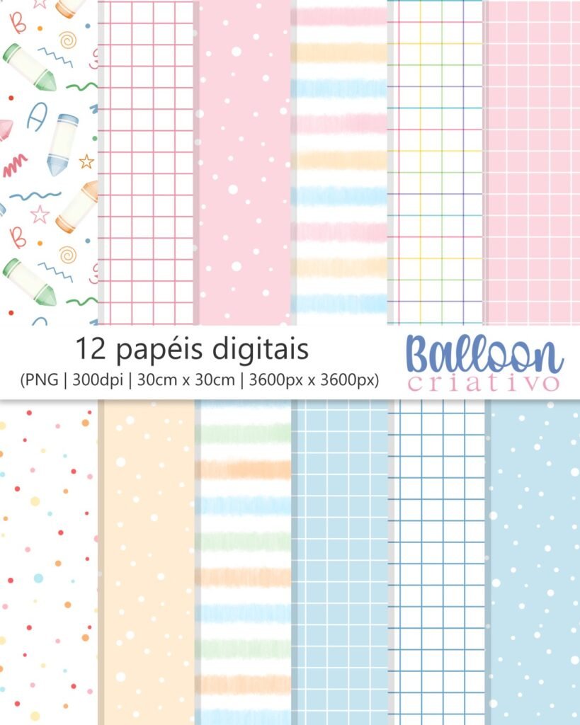 – 12 Papéis digitais 30 x 30 cm (PNG / 300dpi)