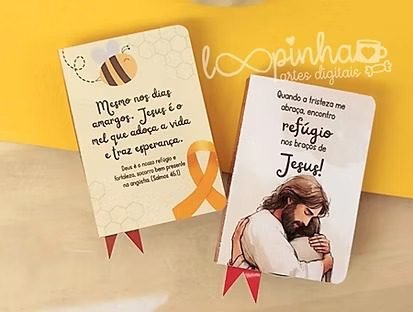 ✅ Arquivos unitários em PNG (2 artes de capa de bíblia e 4 cores de marca-páginas);