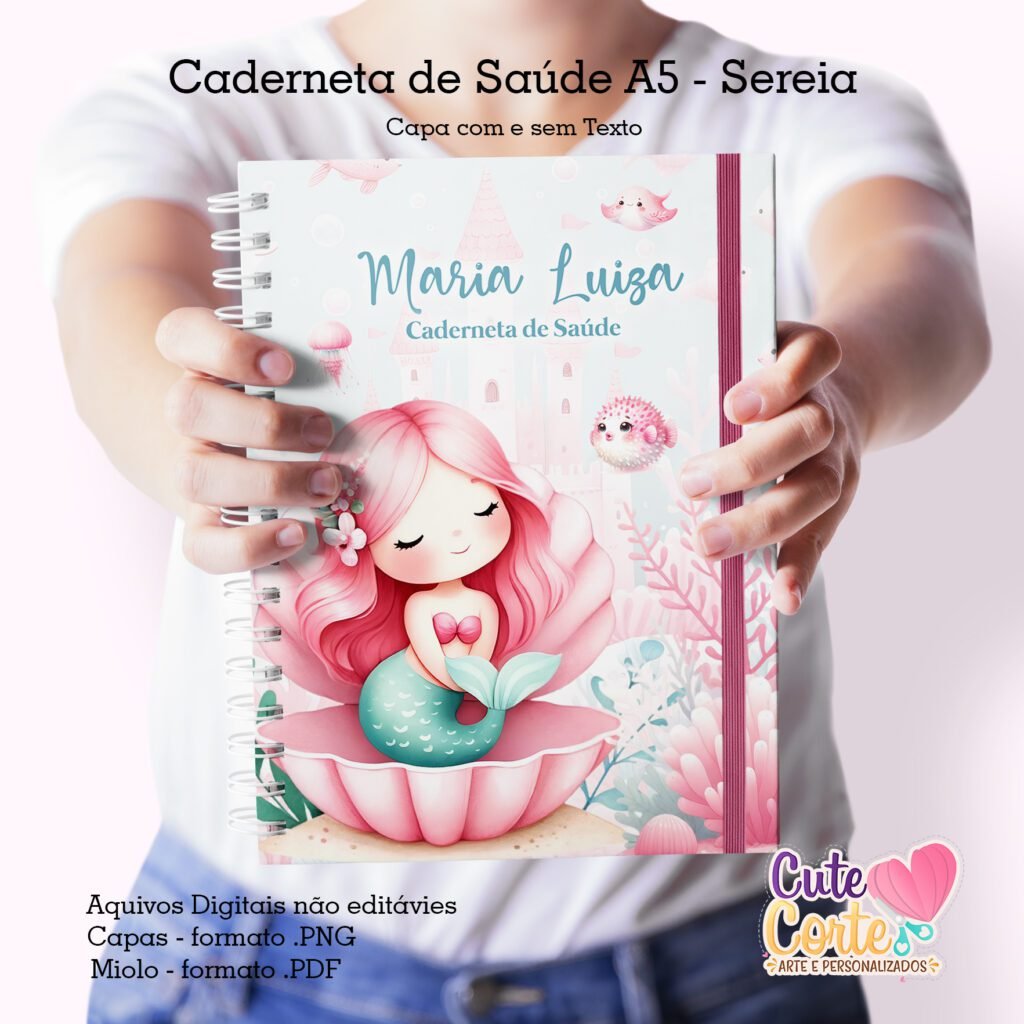 Caderneta de Saúde A5 + Controle de Mamadas – Sereia N.1 (Cute Corte)