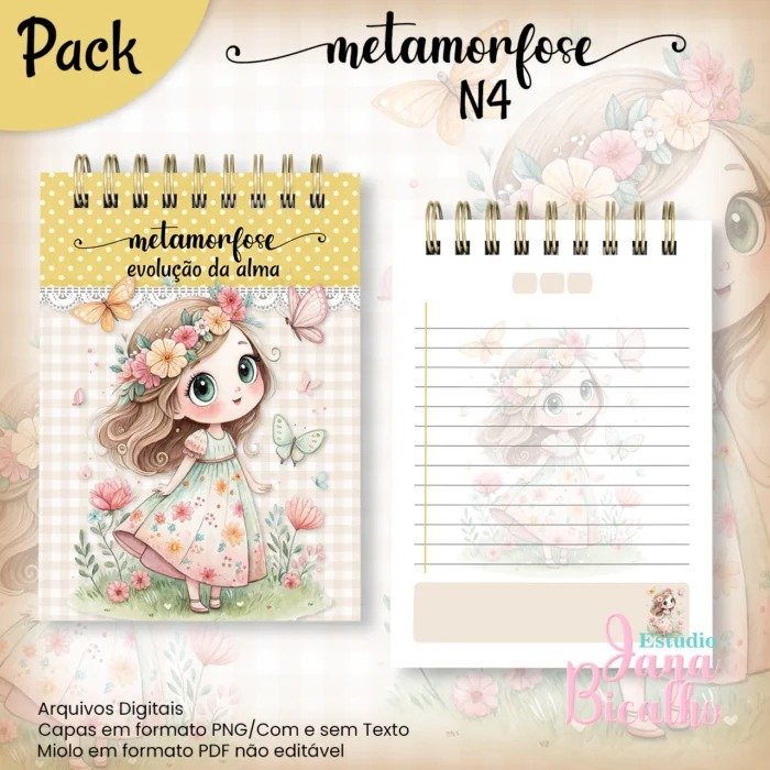 Caderno A5 + Bloquinho – Metamorfose N4 (Jana Bicalho)