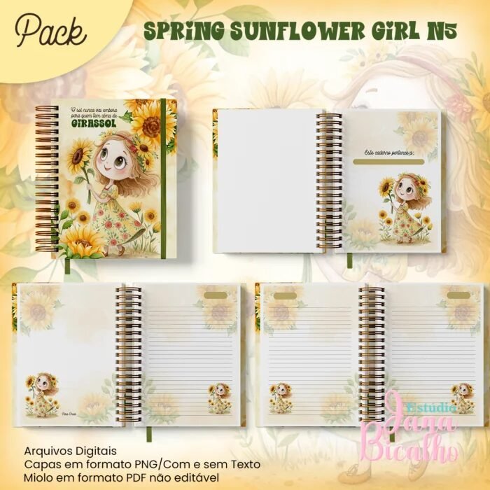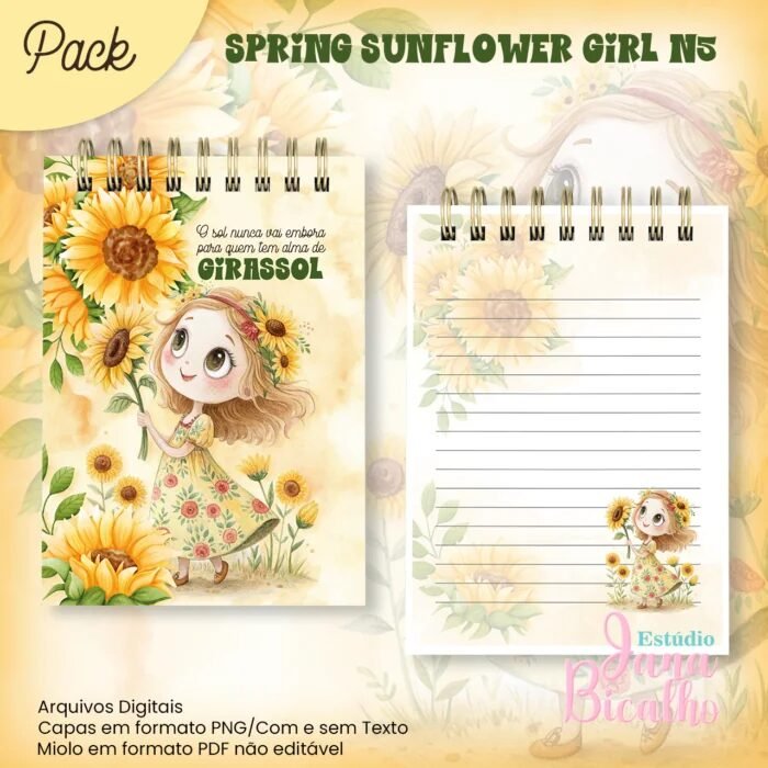 Caderno A5 + Bloquinho – Spring Sunflower Girl N5 (Jana Bicalho)
