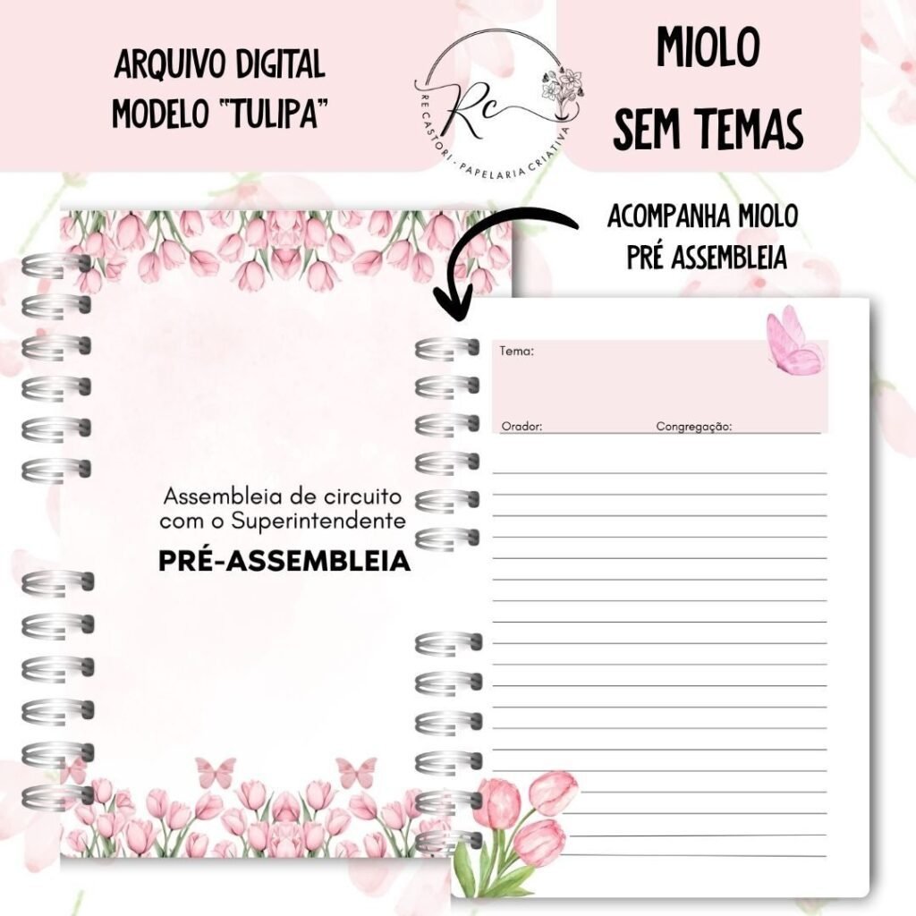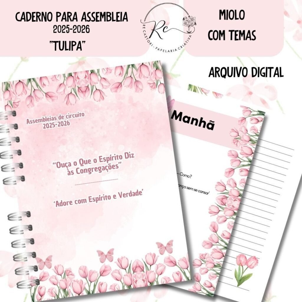 KIT DIGITAL CADERNO + MIOLO ASSEMBLEIA DE CIRCUITO 2025-2026 – FLORAL ROSA – SEM TEMA