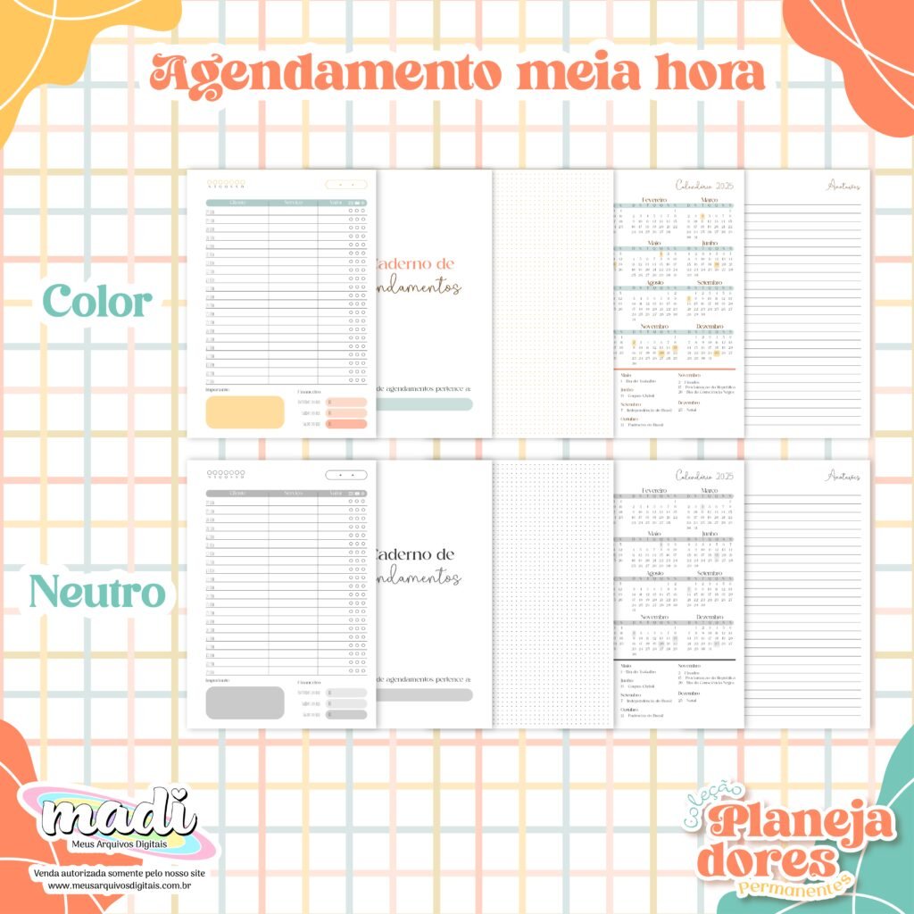 – 10 capas com o título “Caderno de Agendamentos” e sem o título PNG e PDF