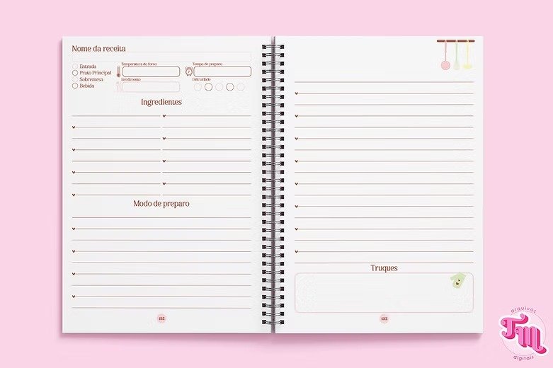 – Páginas para receitas numeradas, facilitando o uso do índice.