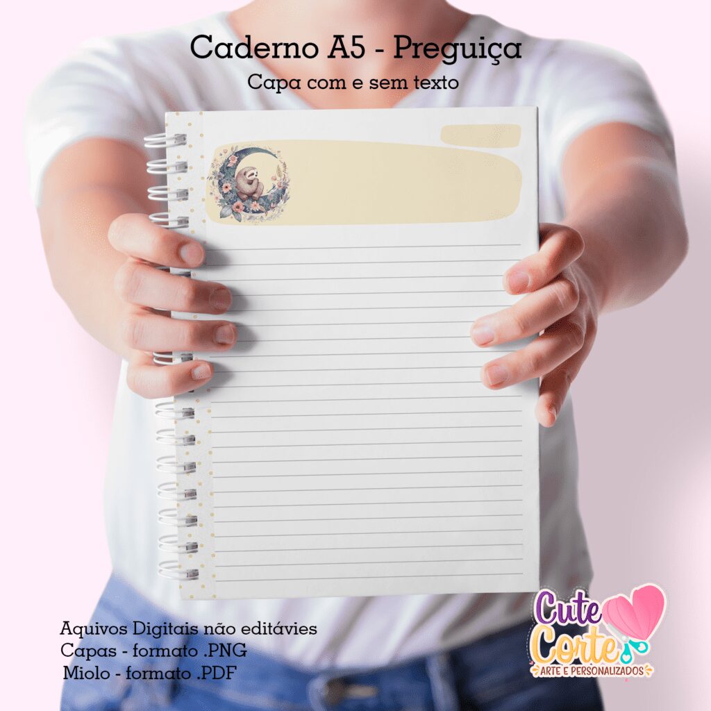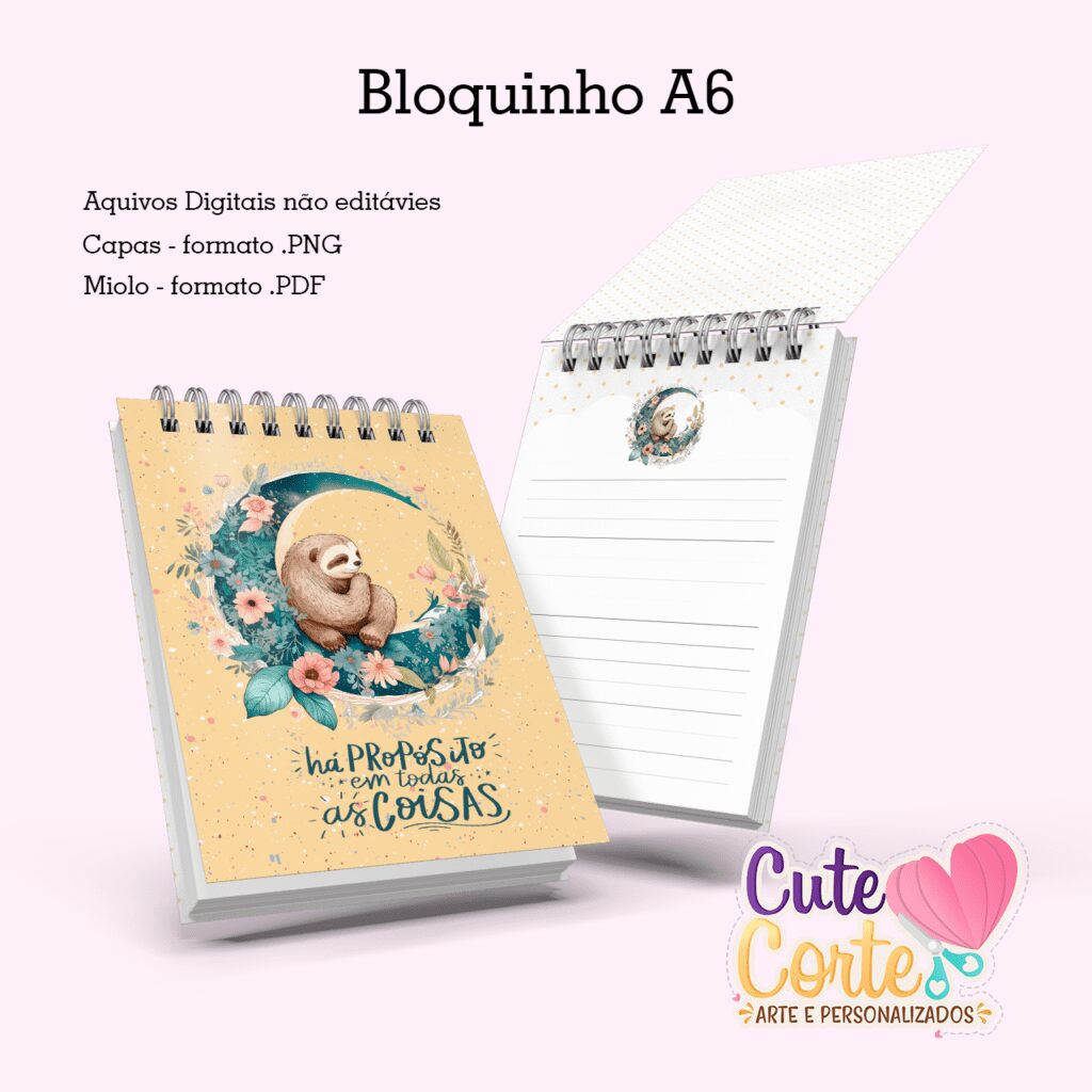Caderno Pautado A5 + Bloquinho A6 – Preguiça (Cute Corte)