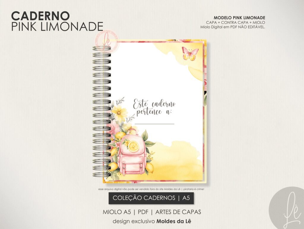 Caderno Pautado A5 – Pink Limonade (Moldes da Lê)
