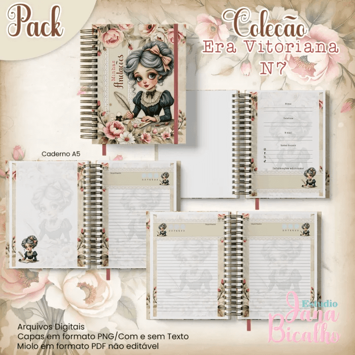 Caderno Pautado A5+Bloquinho A6 – Coleção Era Vitoriana N7