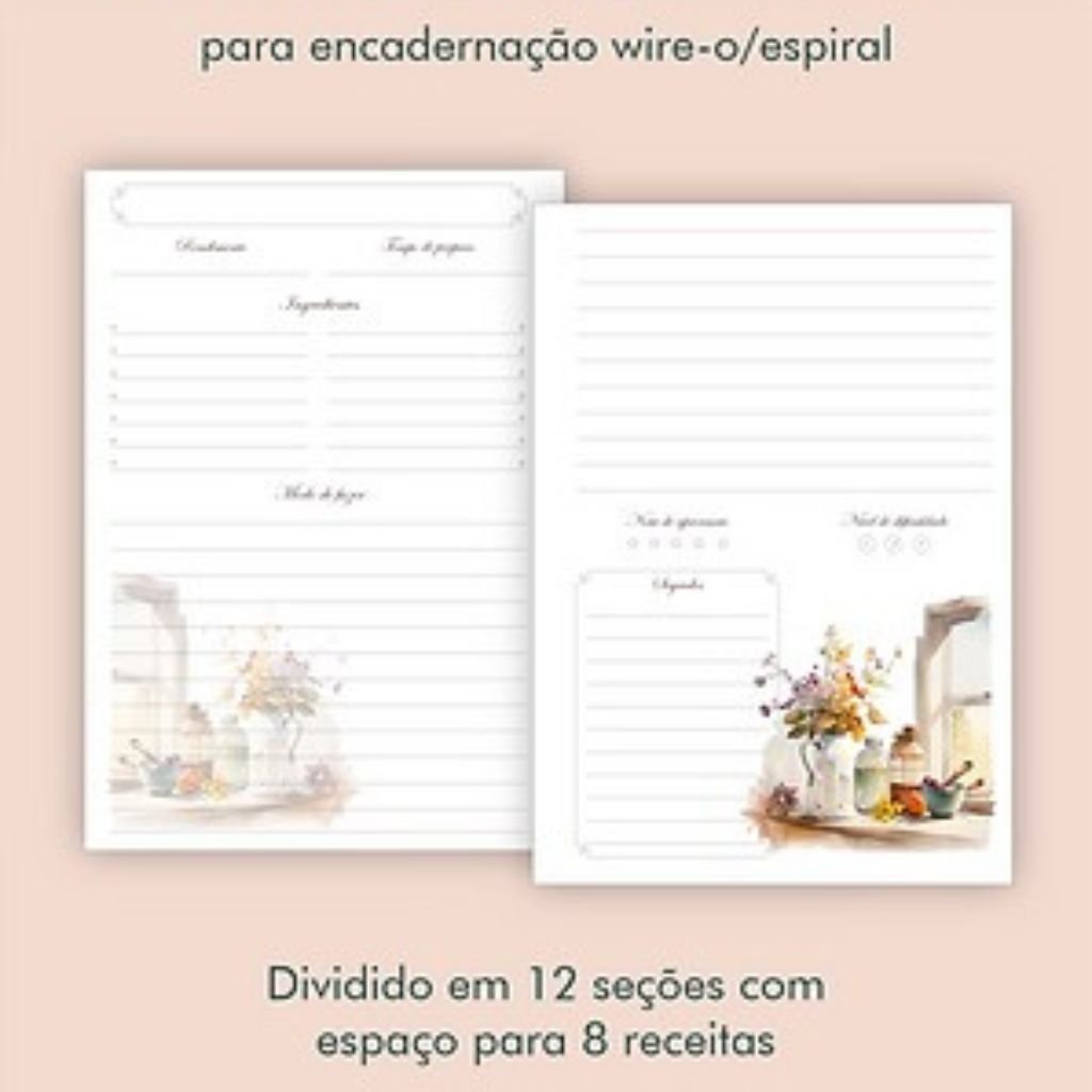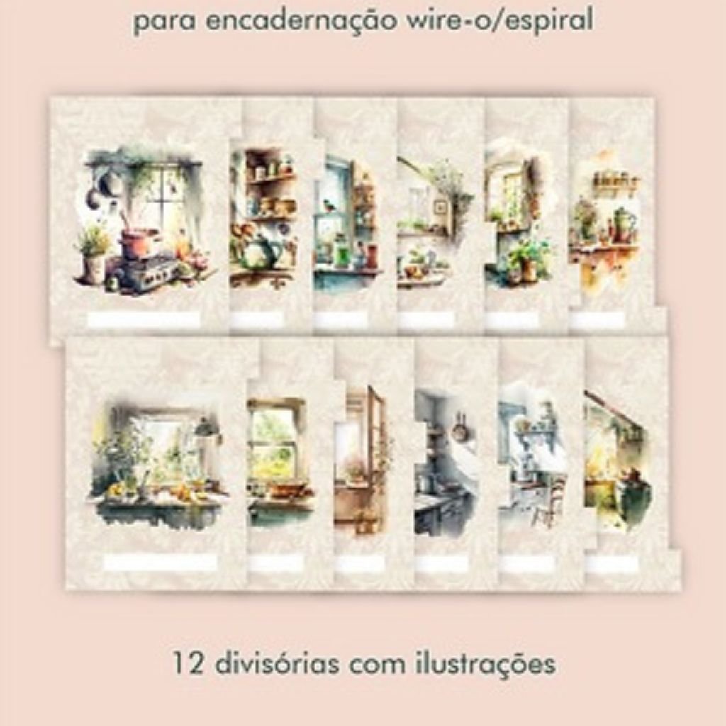 • 12 Divisórias ilustradas com abas e espaço para escrever o nome da seção (ex: receitas doces, receitas salgadas…)