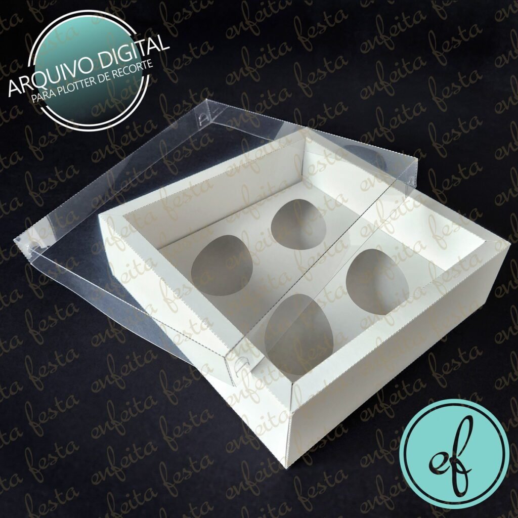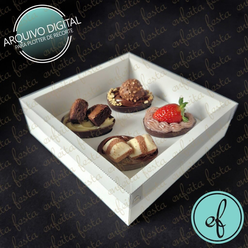 -Caixa Borda Dupla 15 x 15 x 5 cm com Tampa de Acetato Externa e Berço para 4 Ovos Abertos 50g (Molde BWB 846)