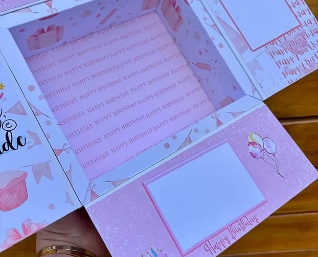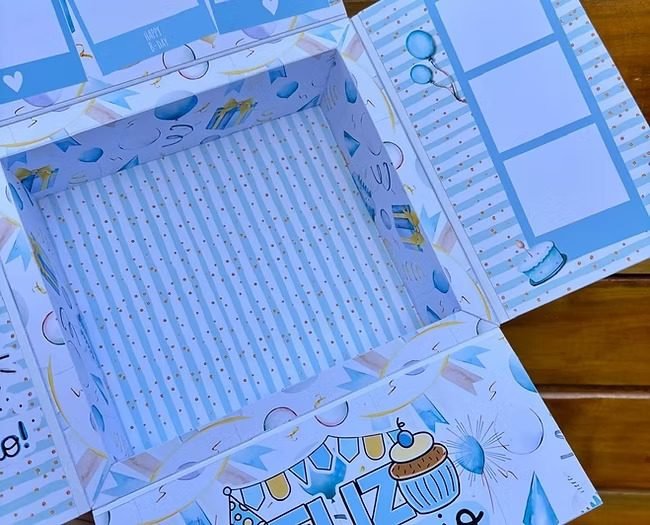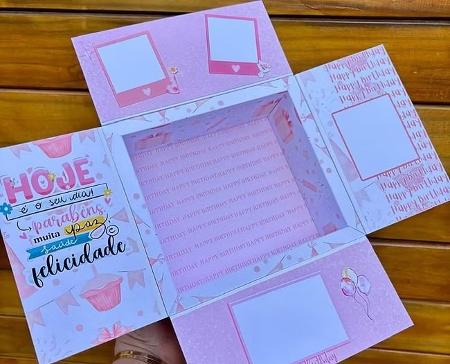 Caixa com 4 Abas e com Foto Aniversário – Rosa | Azul
