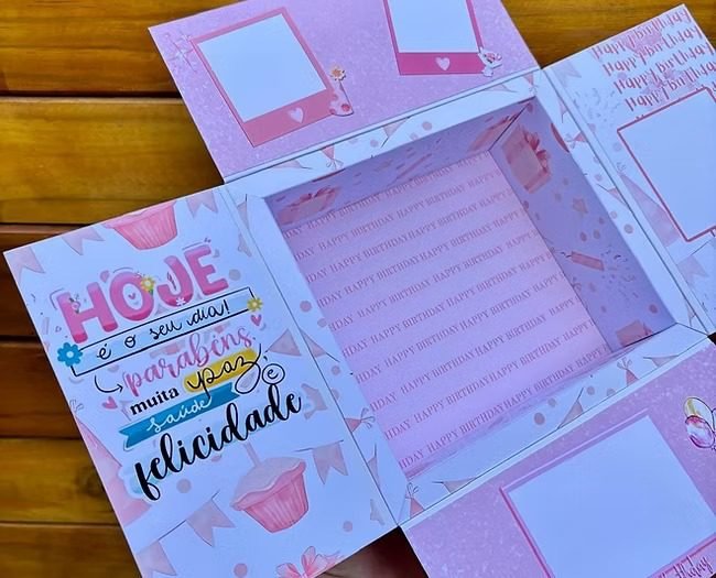 CAIXA 4 ABAS COM FOTO FELIZ ANIVERSÁRIO PDF