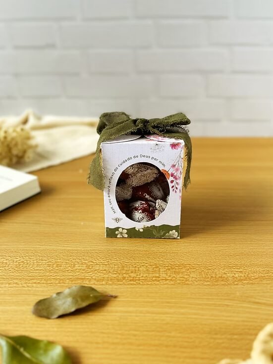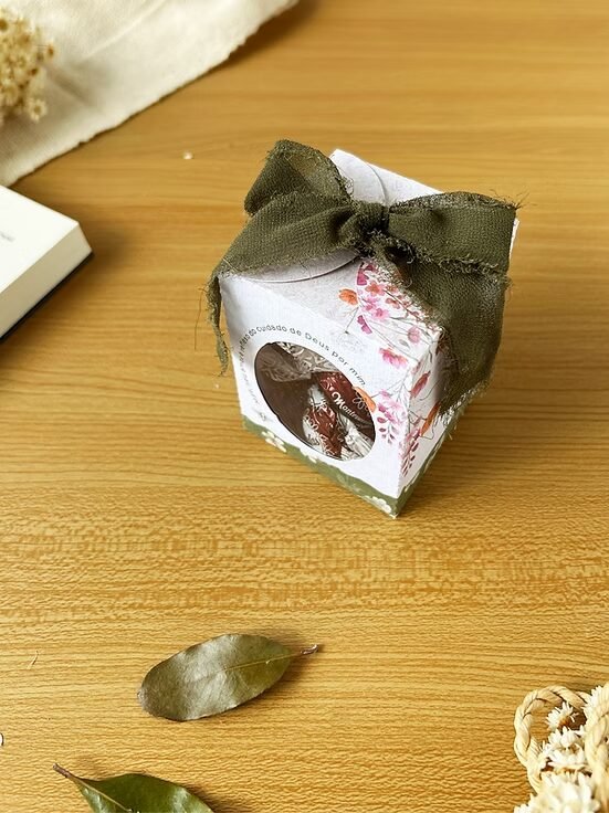 Medidas da caixa montada: A 8 cm | L 6cm | P 6 cm.