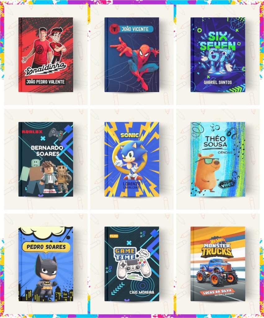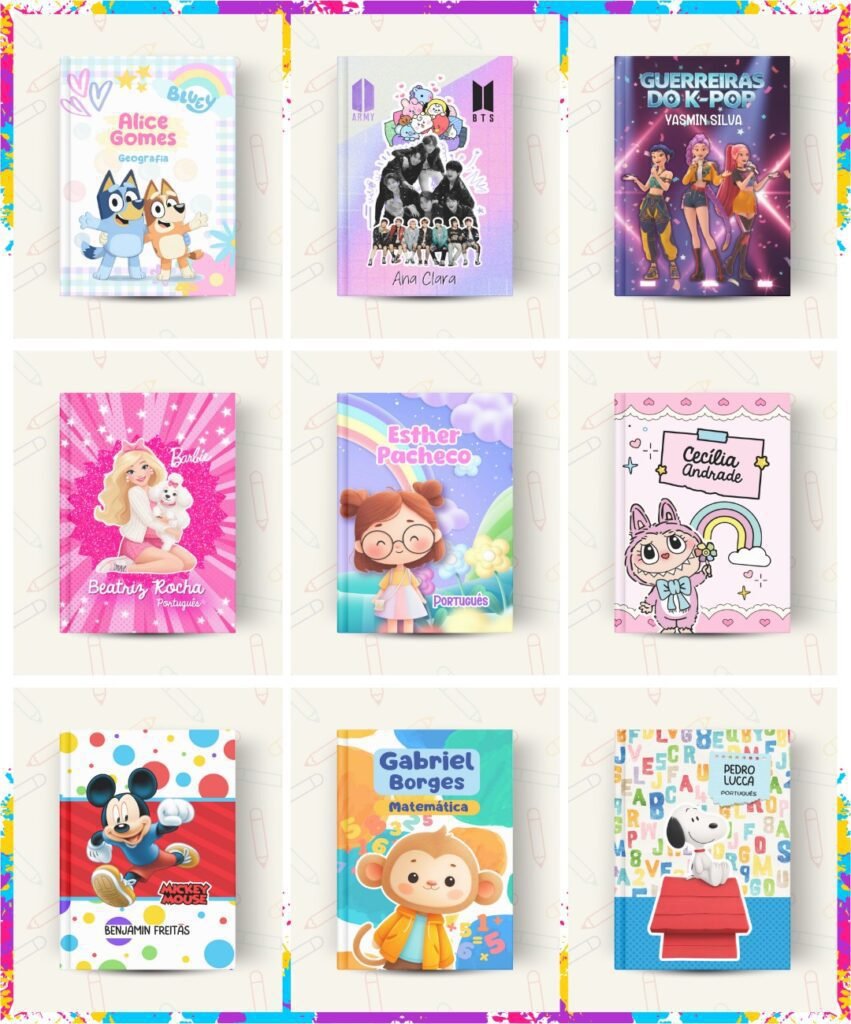 • Contém CATÁLOGO de capas e Mockups dos cadernos para sua cliente conseguir visualizar o produto.