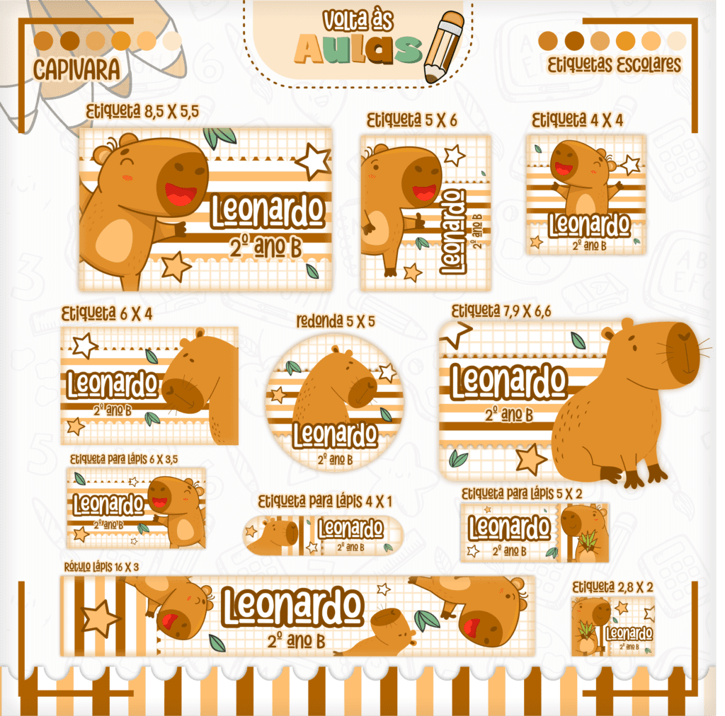 Capivara Menino – Kit Escolar 2025 (Lina Criativa)