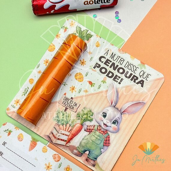 - O card tem espaço para colocar 1 chocolate Batom Garoto.
