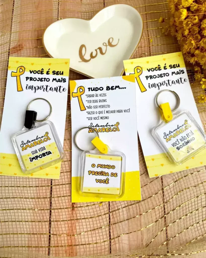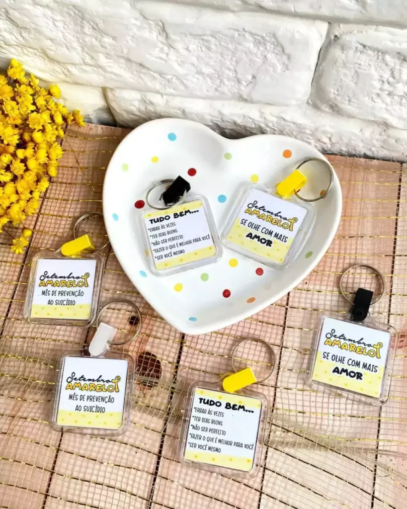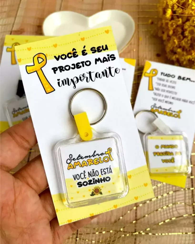 – Inclui 04 modelos de CHAVEIROS e 02 modelos de CARTÃO com o tema SETEMBRO AMARELO. 💛