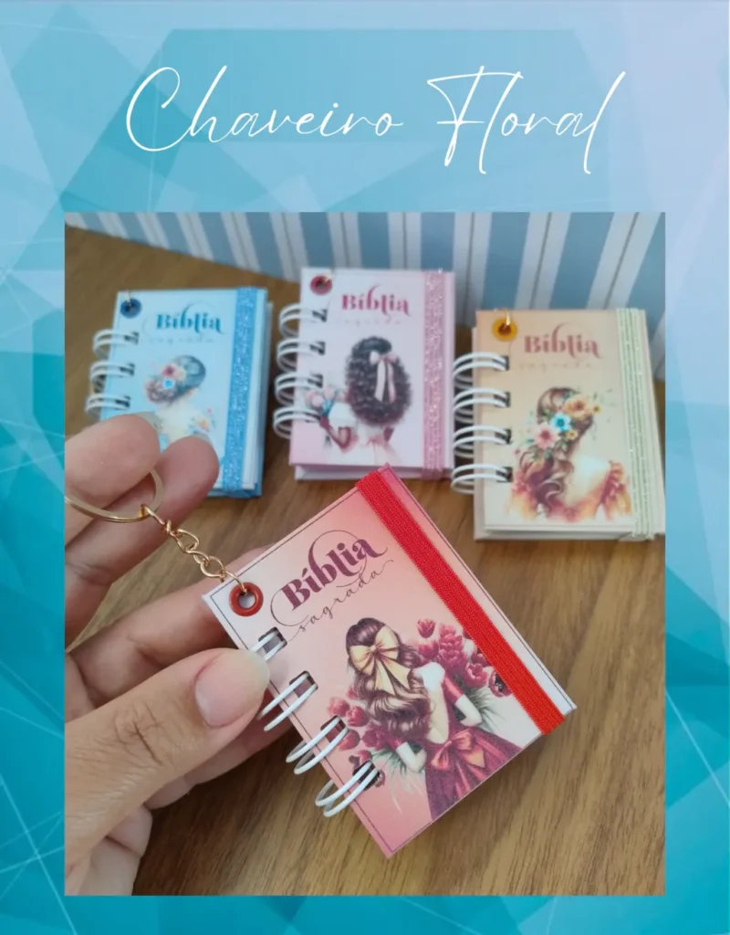 Chaveiro Mine Bíblia Floral 04 Cores no Kit