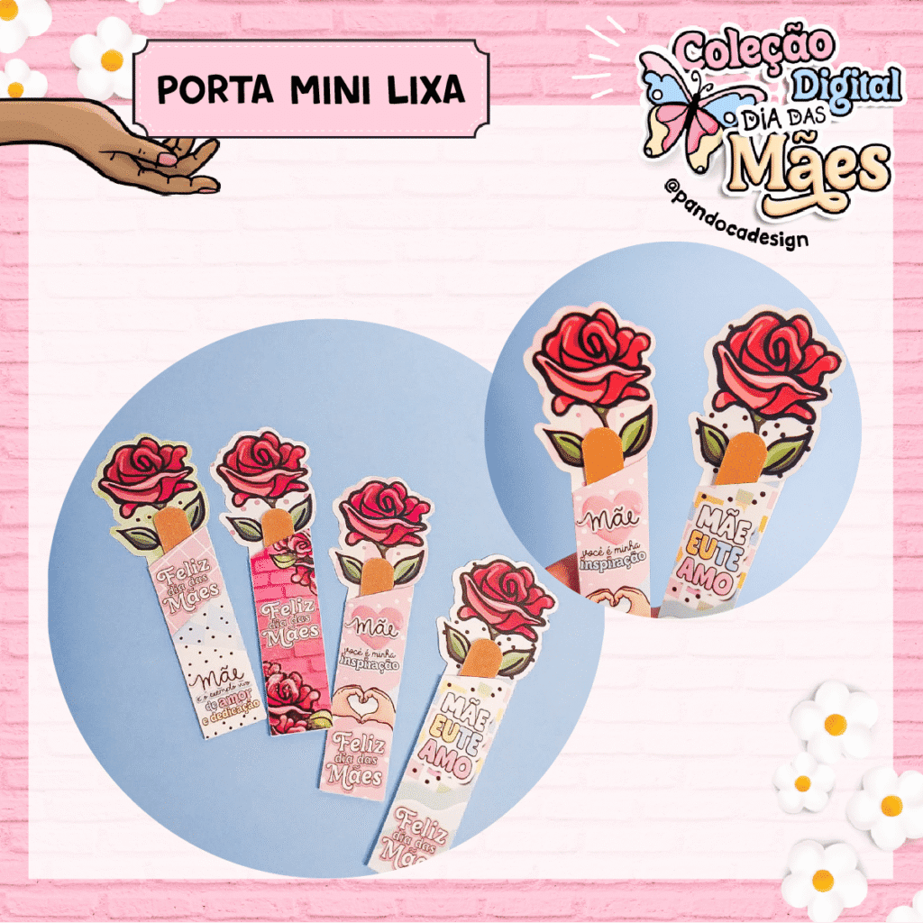 4 Artes para Porta Mini Lixa Flor 4cmx12,5cm em PNG, PDF e com molde em DXF e SVG