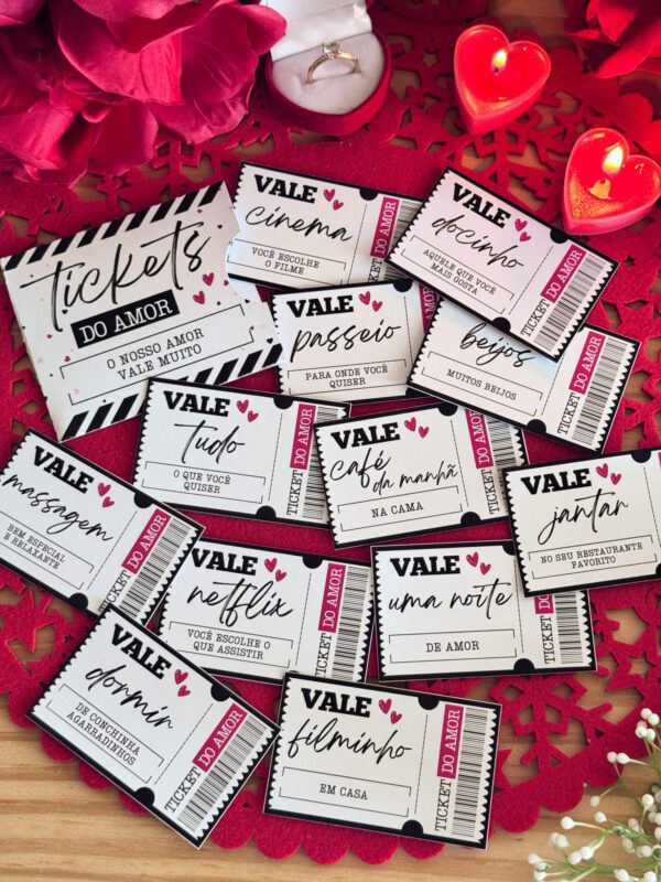 12 TICKETS DO AMOR 8X5 PNG EPDF + ENVELOPE (MONTADO 8X9,5CM) EM PNG, PDF, DXF, SVG E STUDIO