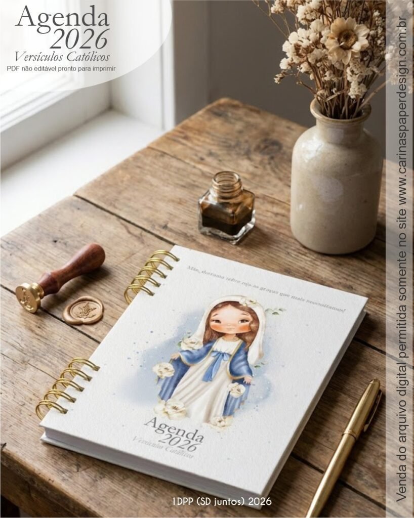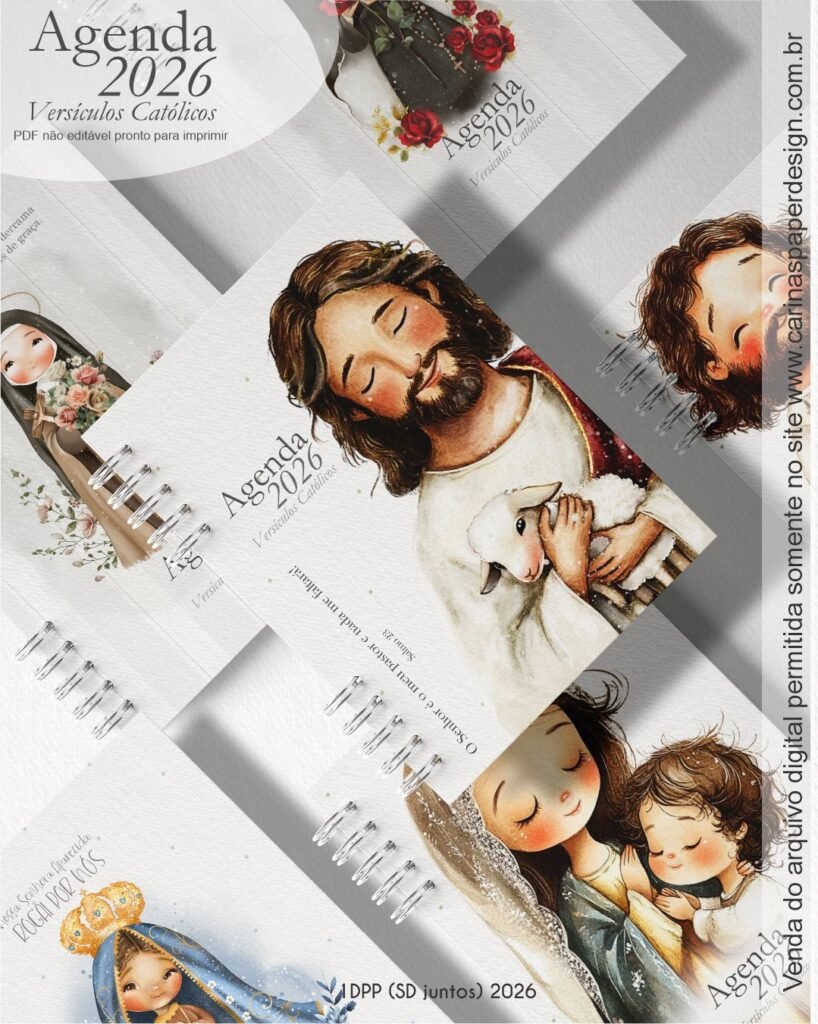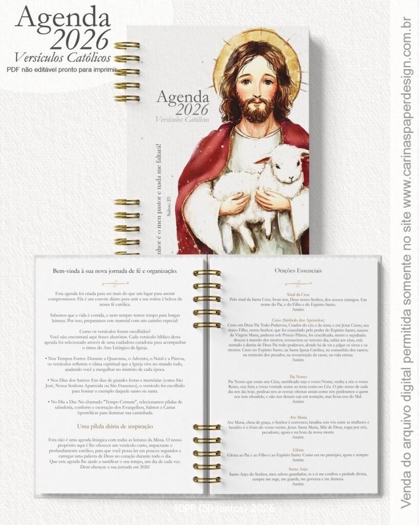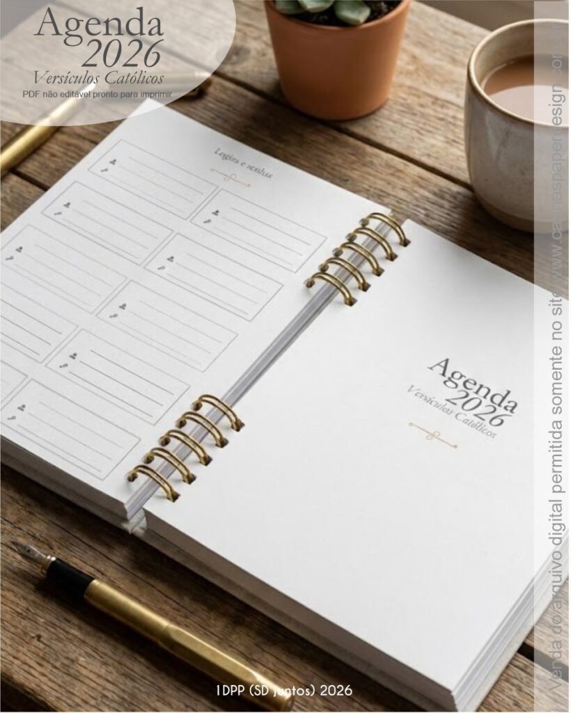 1 miolo de Agenda datada 2026 com versículos católicos PDF não editável com 336 páginas (168 folhas)