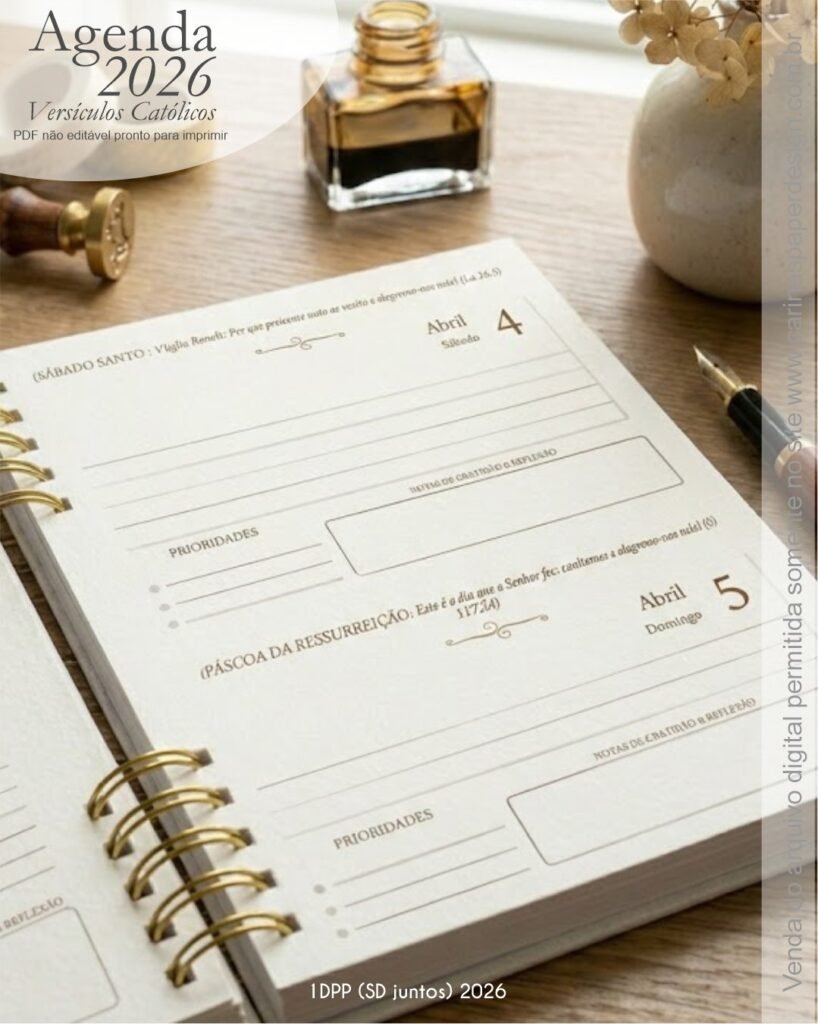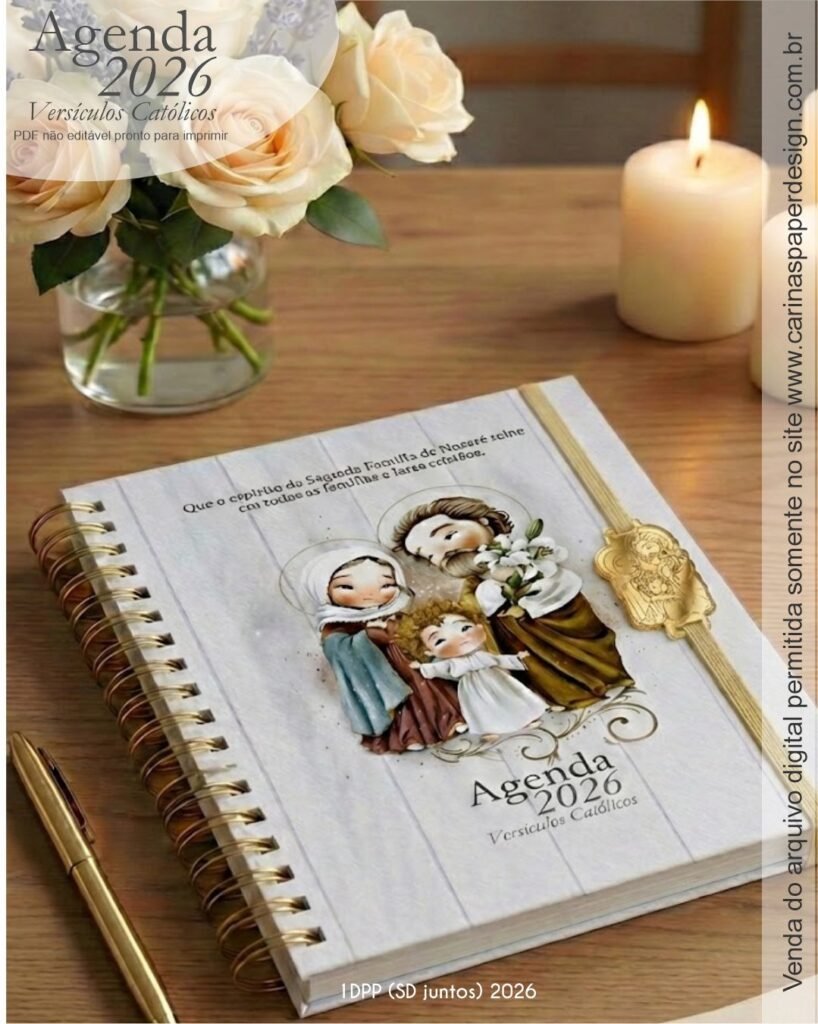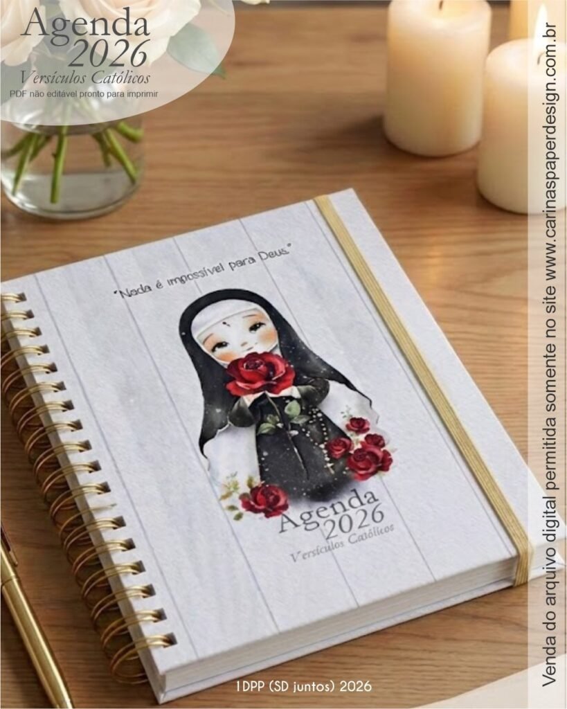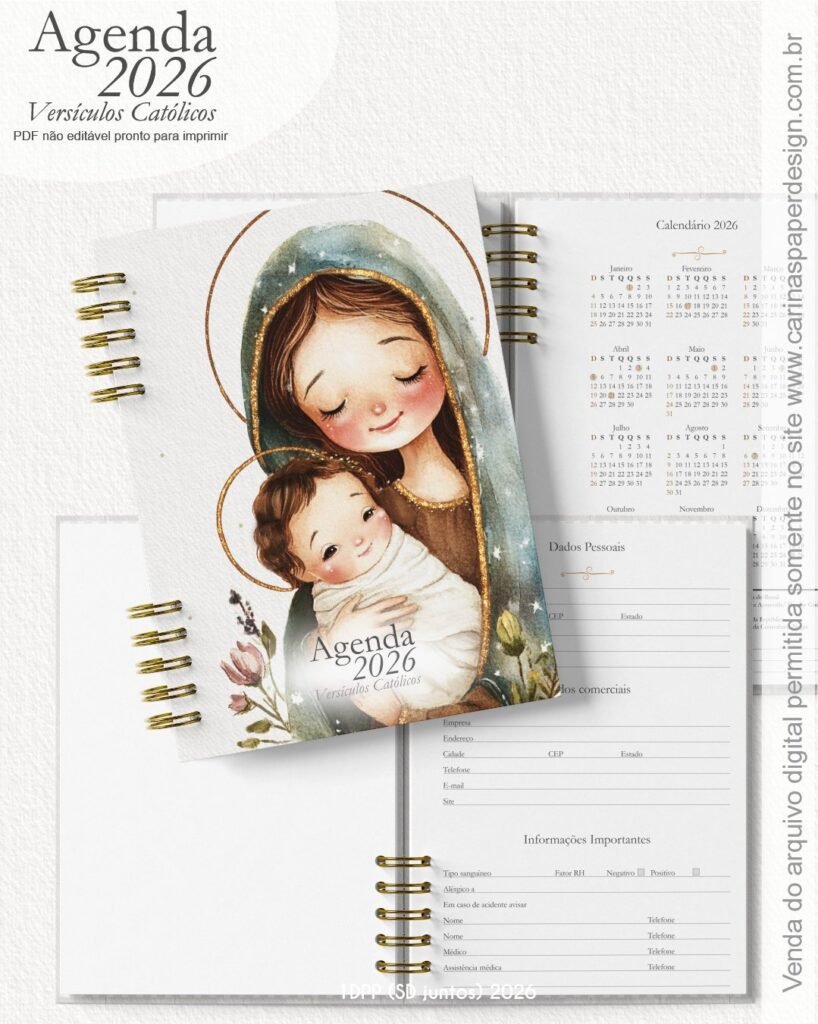 1 miolo de Agenda datada 2026 com versículos católicos PDF não editável com 336 páginas (168 folhas)