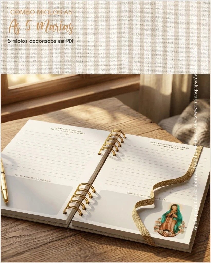 5 modelos de miolos A5 (14,8x 21 cm) decorados com as 5 Marias em PDF não editável