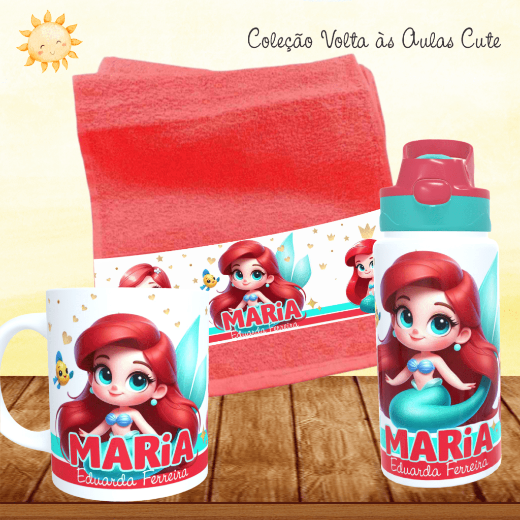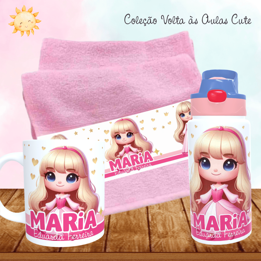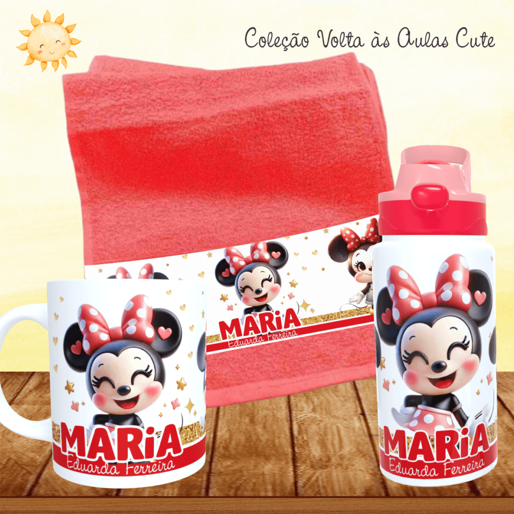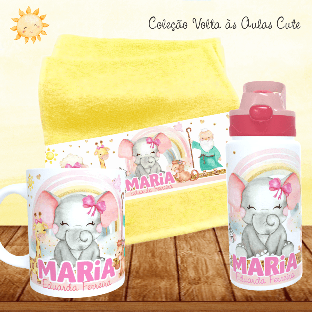 COMBO Caneca + Squeeze + Toalhinha – Cute Volta às Aulas