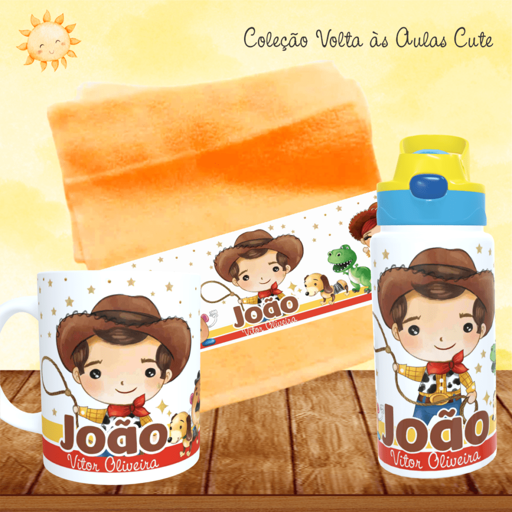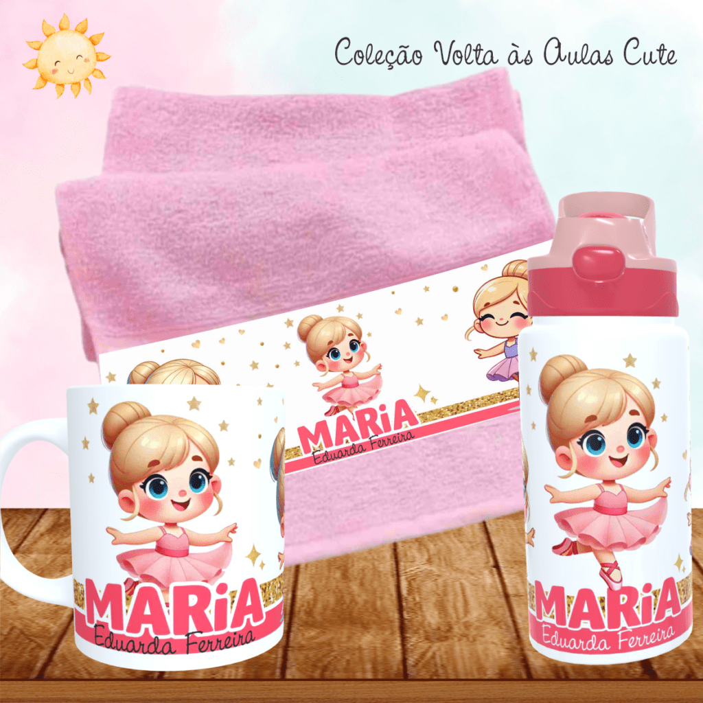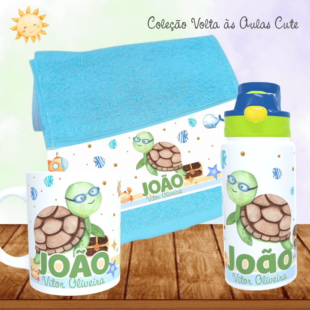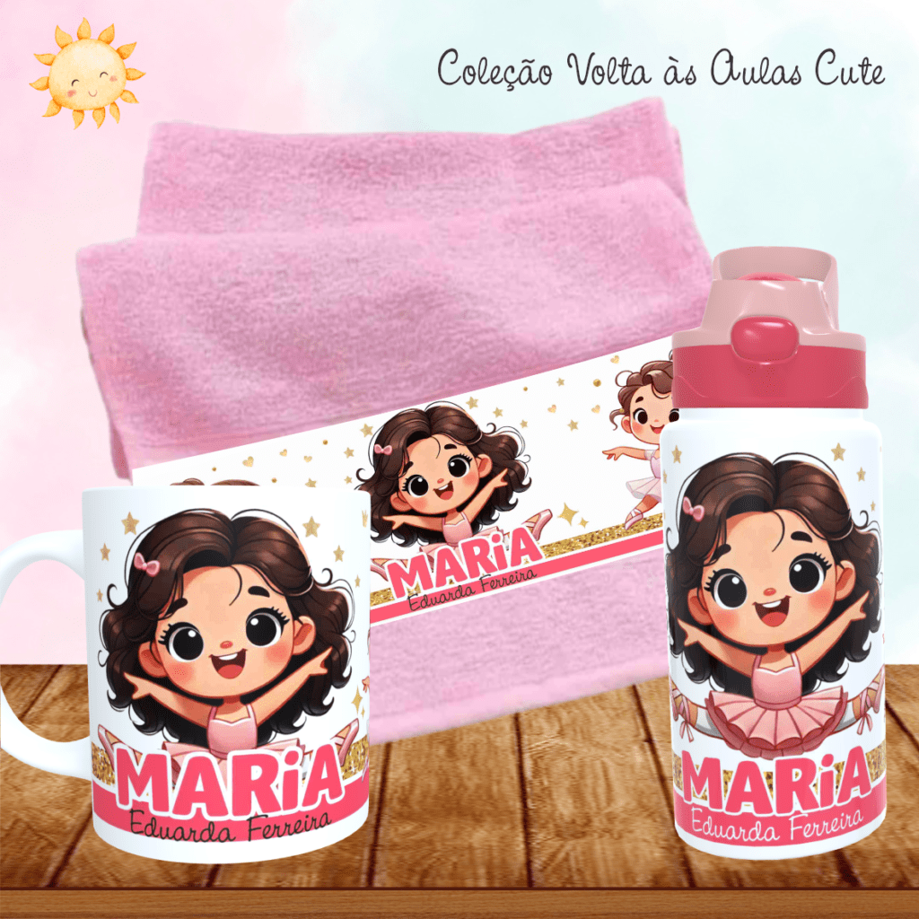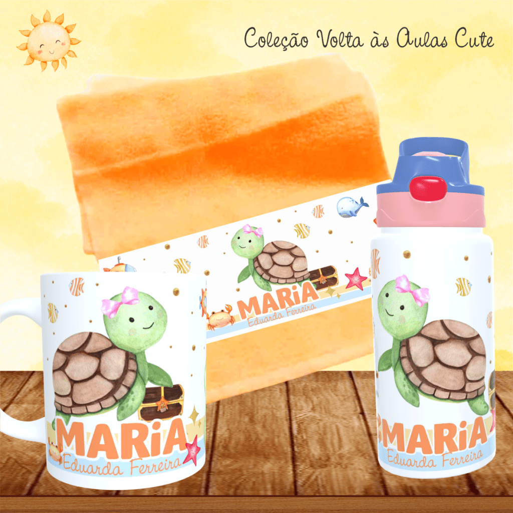 COMBO Caneca + Squeeze + Toalhinha – Cute Volta às Aulas