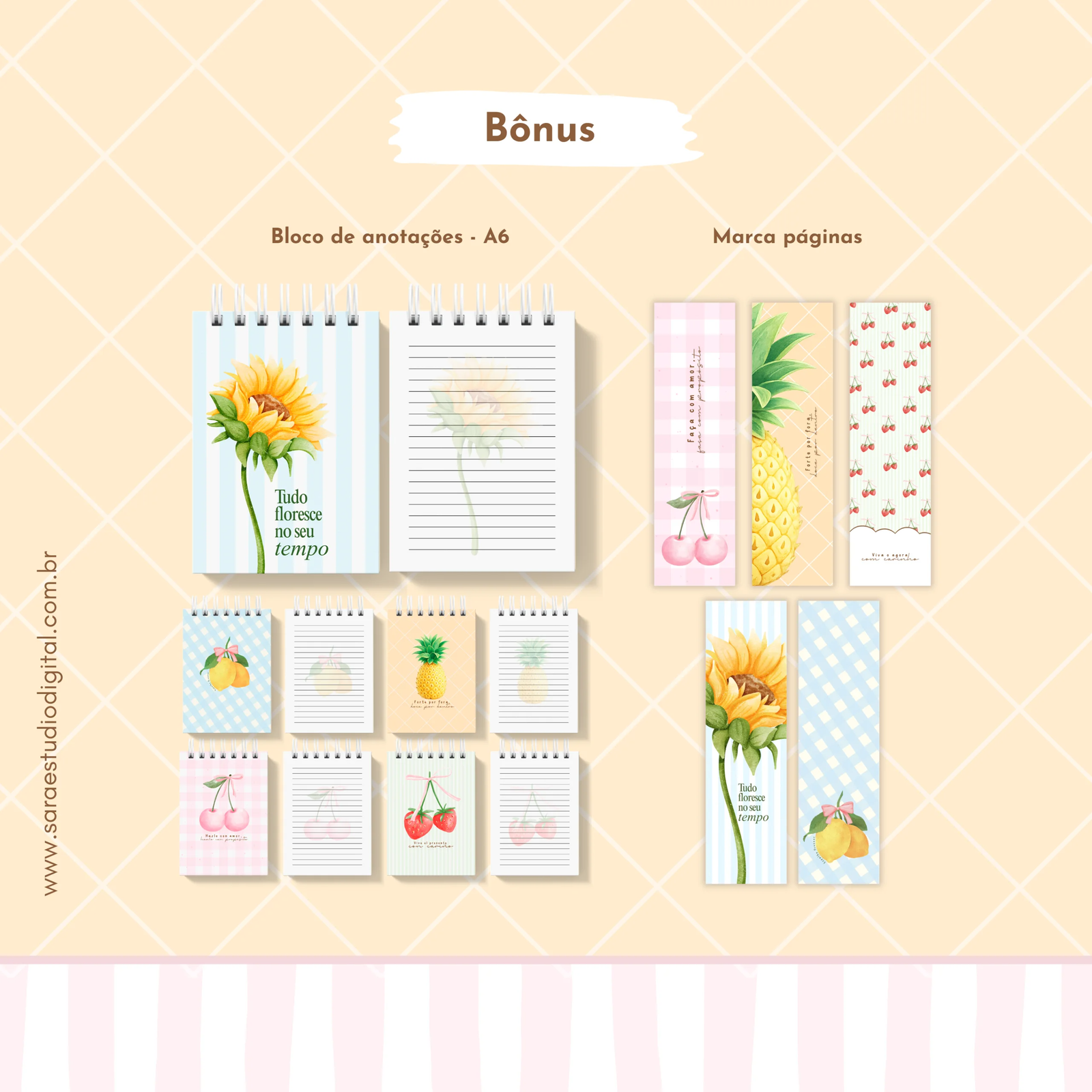 Bloquinhos A6 + marca-páginas