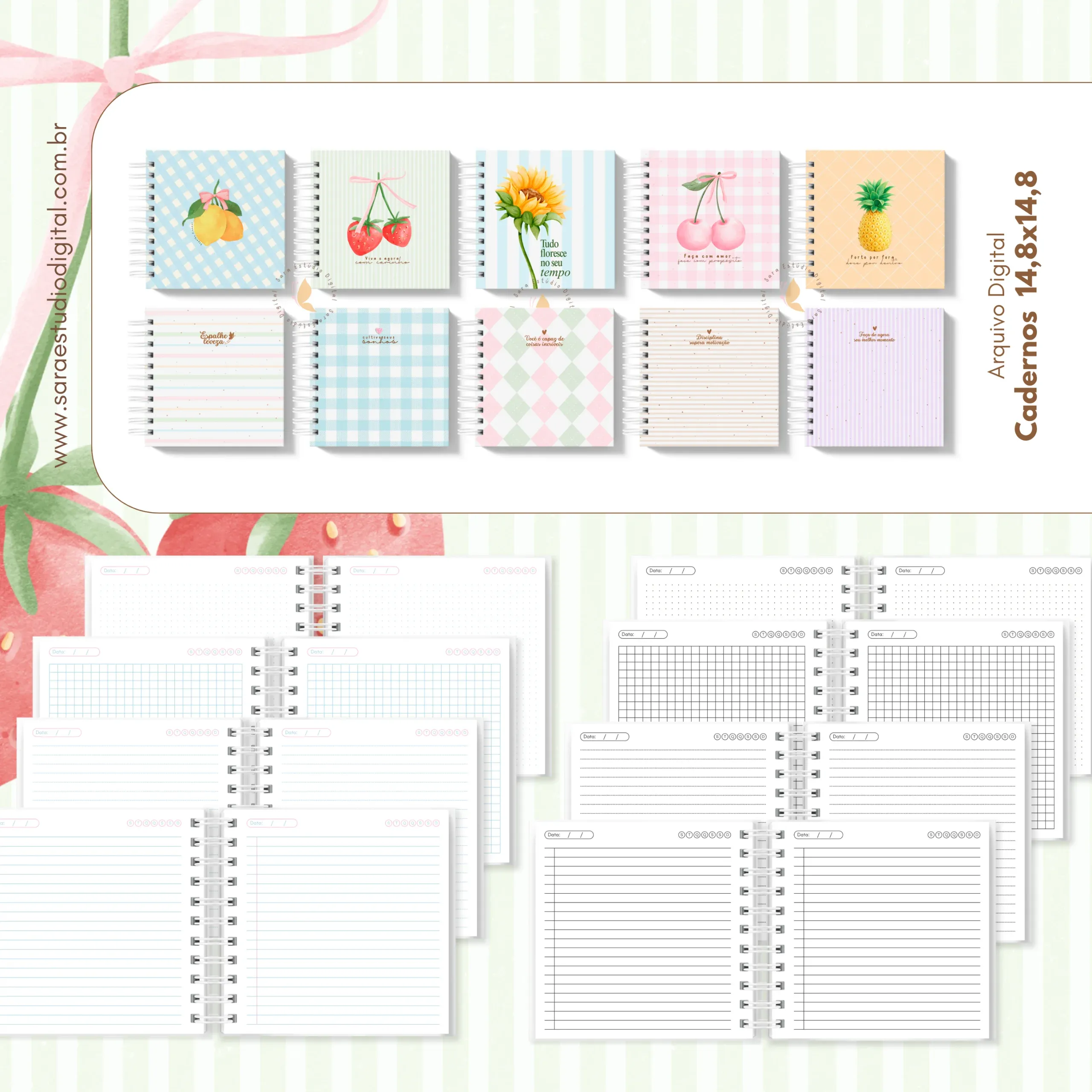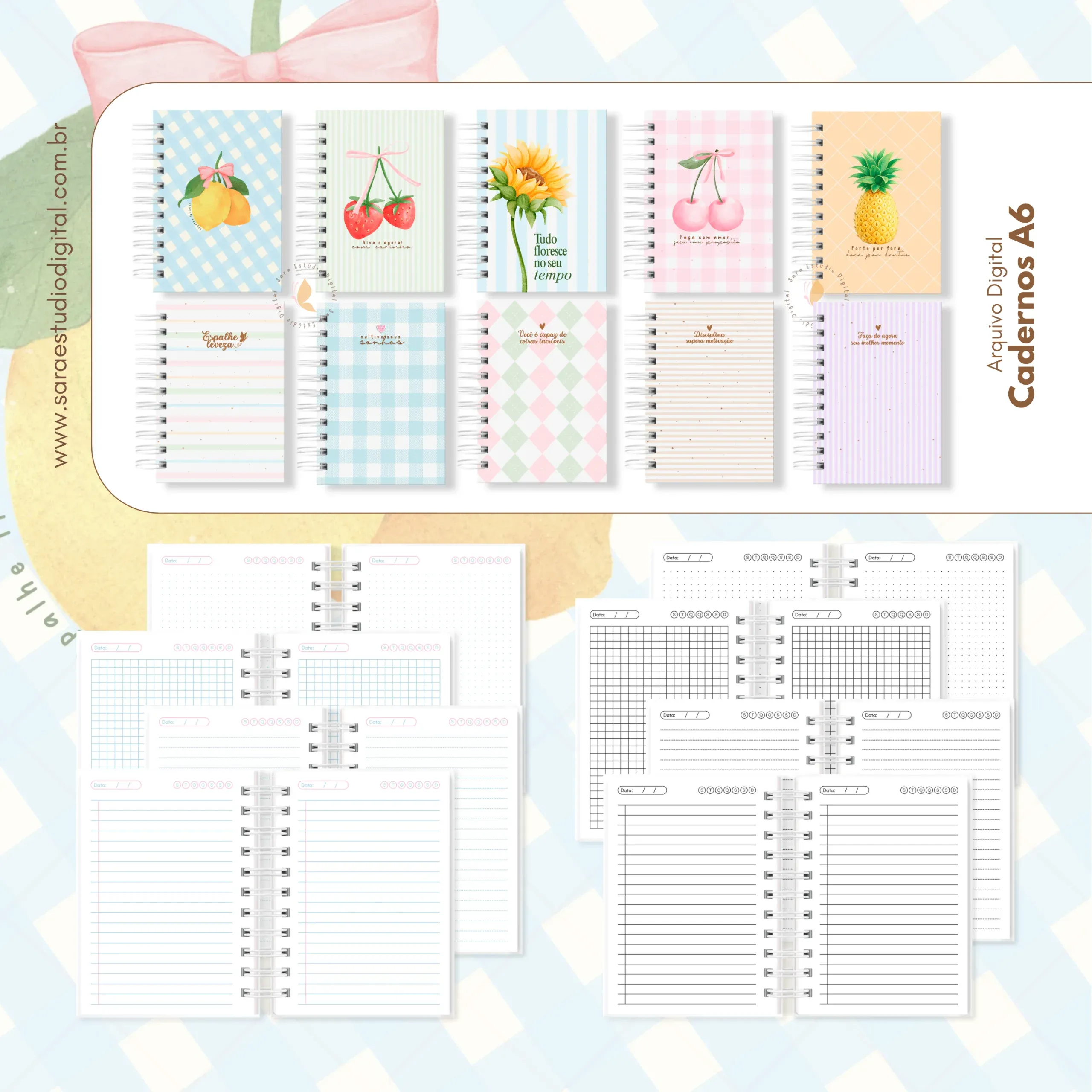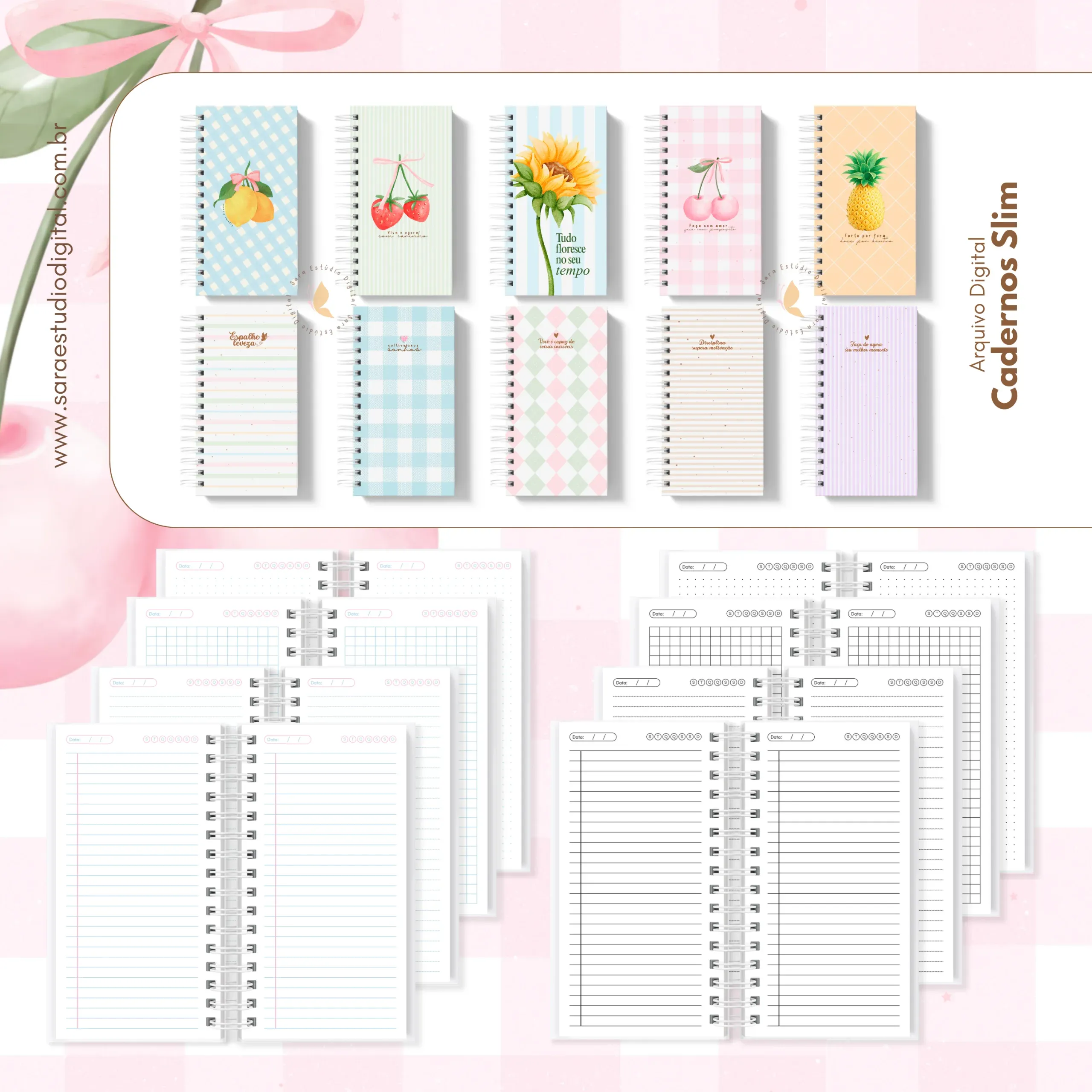 Arquivo digital: Combo cadernos – 7 tamanhos: