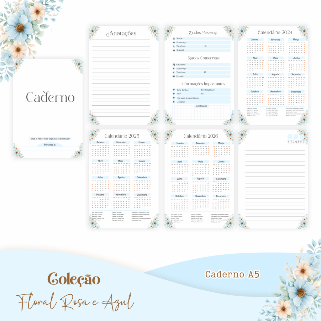 COMBO Floral Alfabeto Rosa e Azul – 5 Modelos (Pamella)