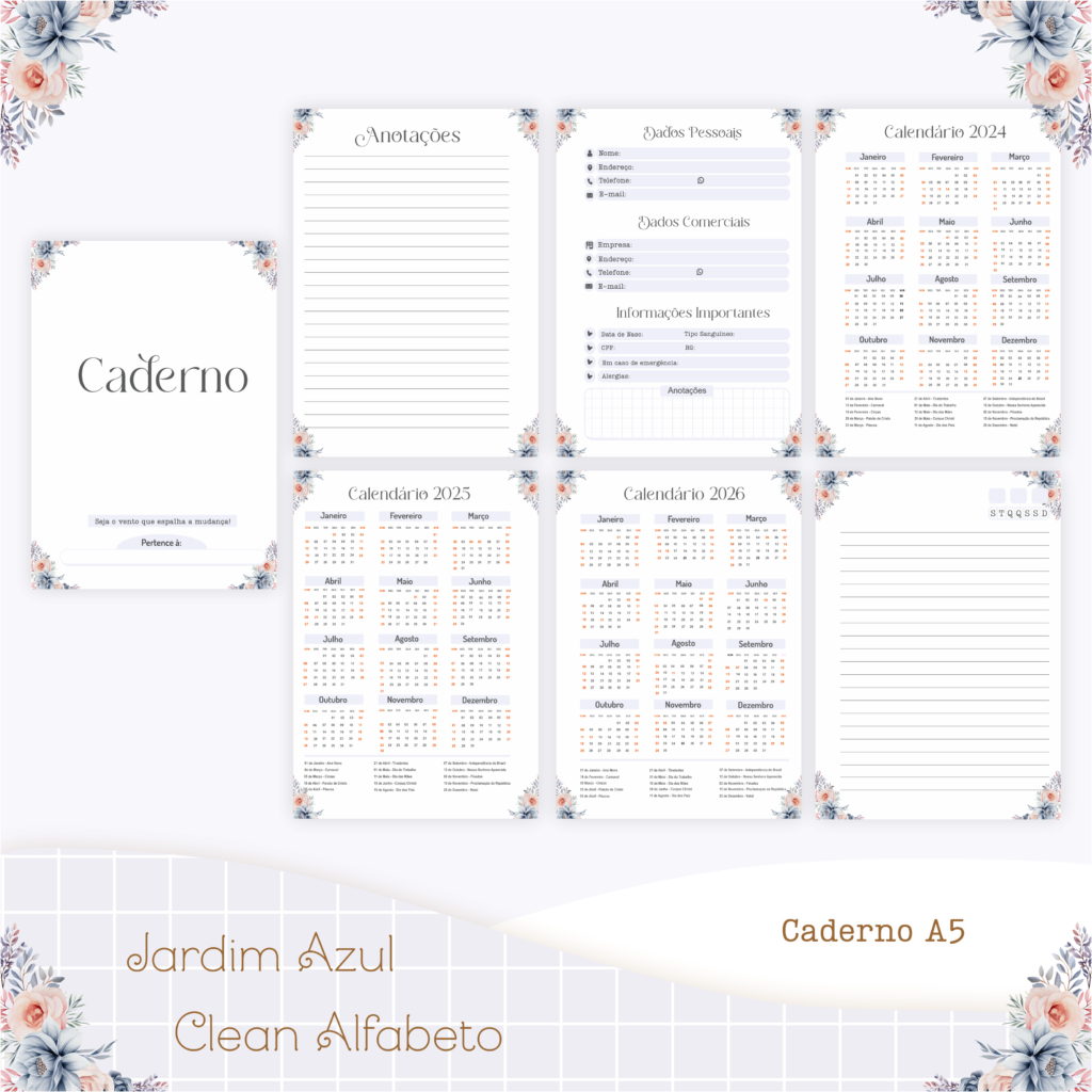 COMBO Jardim Azul Clean Alfabeto 2025 – 5 Modelos (Pamella)