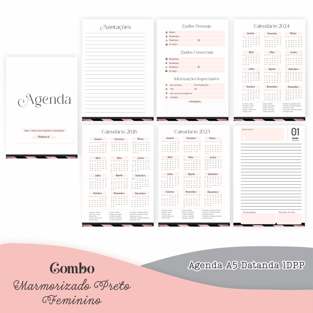 COMBO Marmorizado Preto Feminino – 5 Modelos (Pamella)