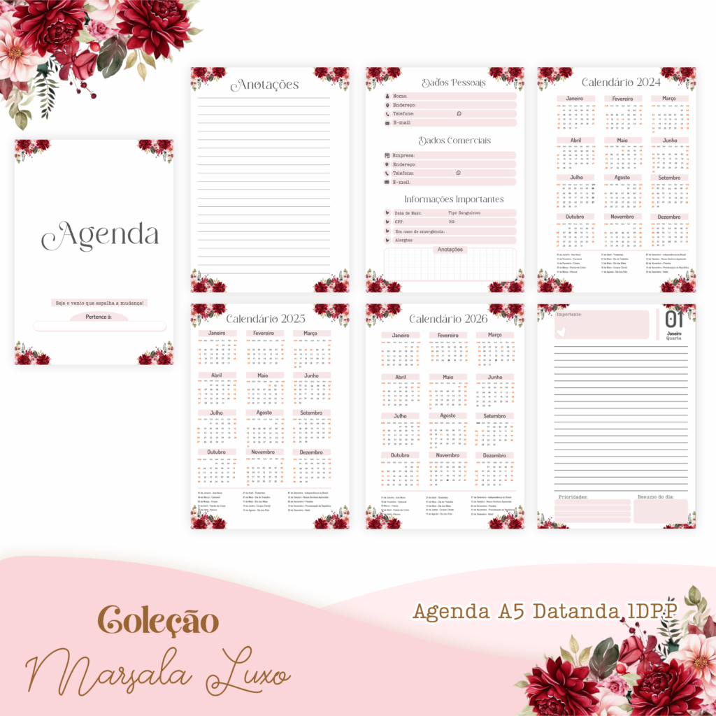 COMBO Marsala Luxo Alfabeto – 5 Modelos (Pamella)