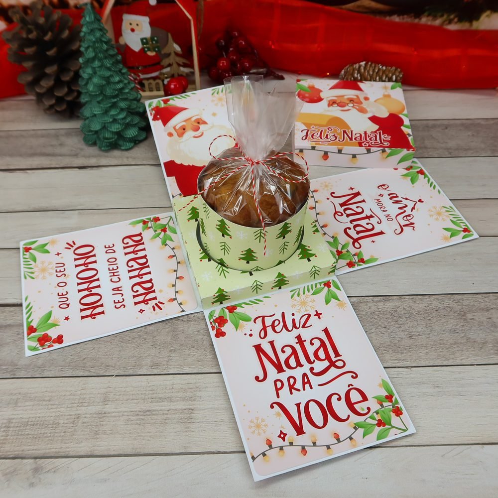 - Você irá receber 1 modelo e arte de Caixa Explosão para Panetone 80g.
