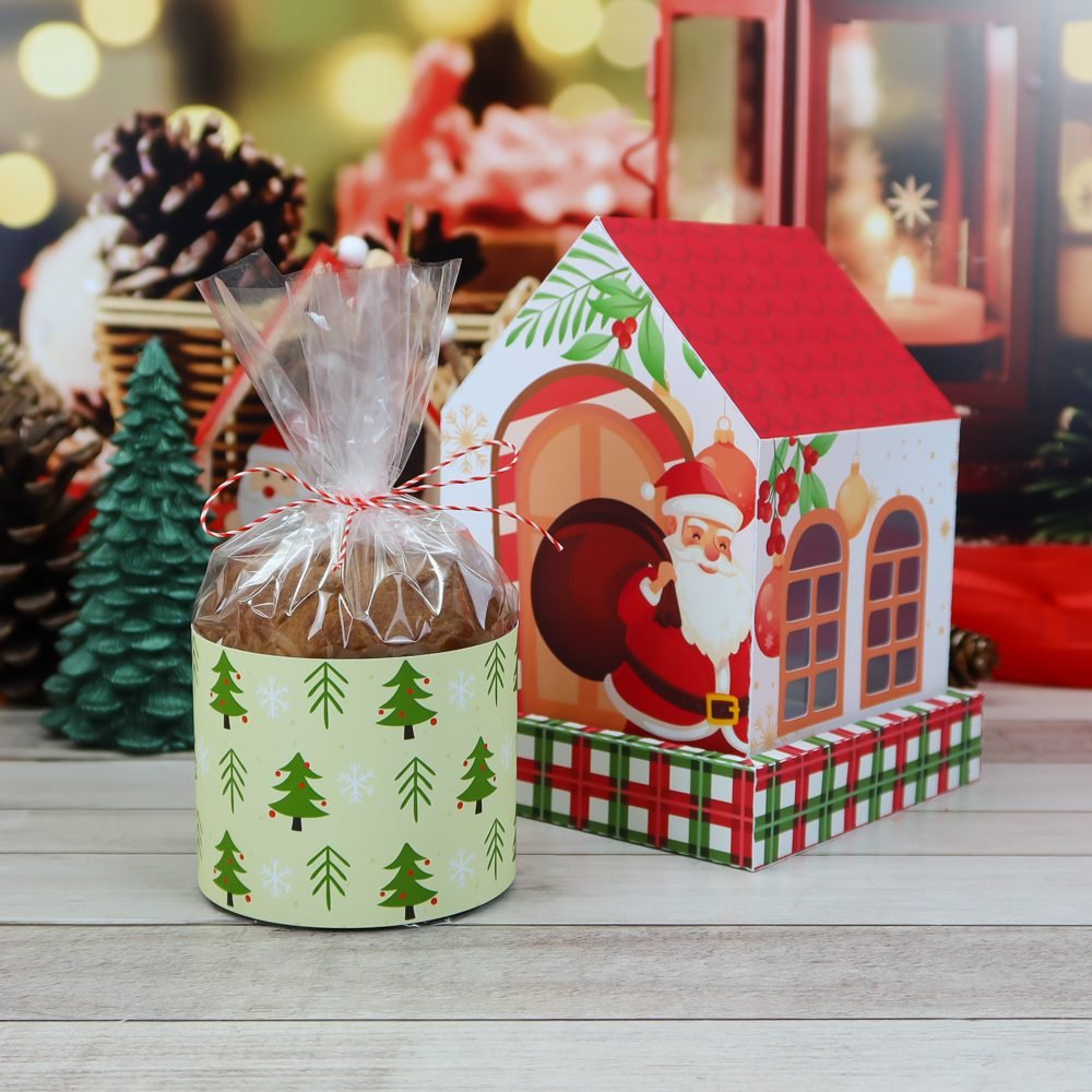 - Você irá receber 1 modelo e arte de Caixa Casinha para Panetone 80g.