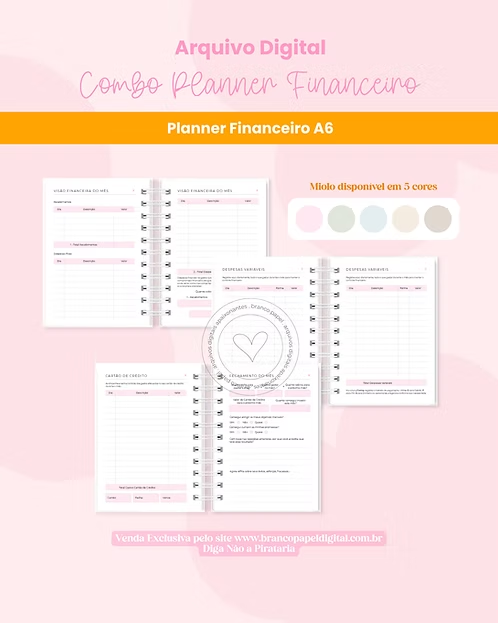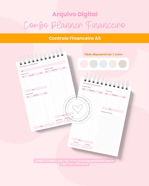 - Miolo Planner Financeiro A5 Não-Datado em PDF (Miolo Rosa, Verde, Azul, Areia, Nude e Neutro)