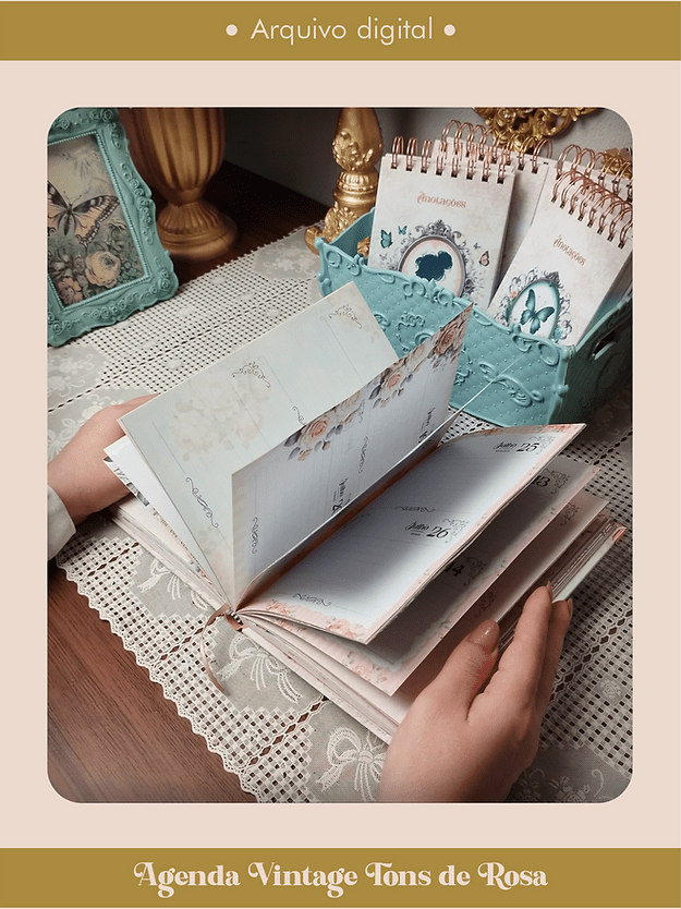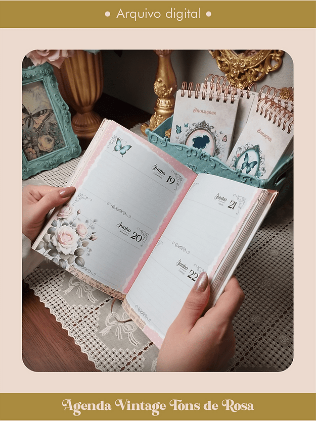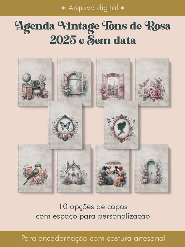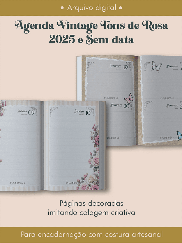 Arquivo Digital Agenda Vintage Tons de Rosa Costura