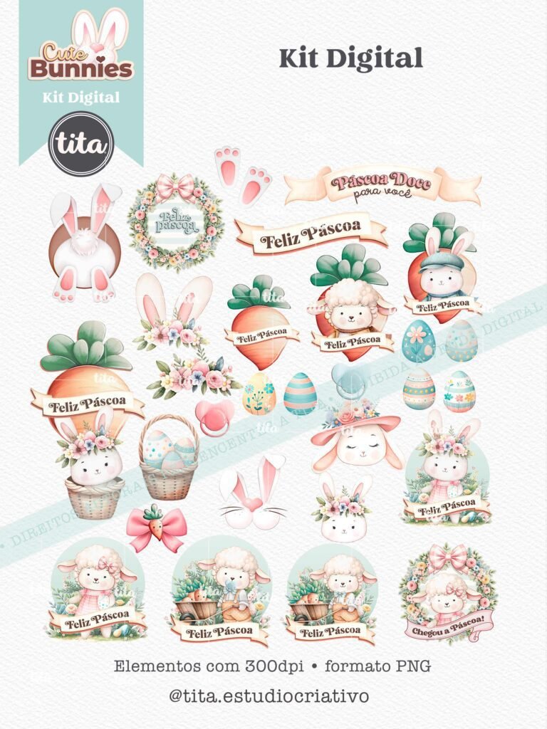 Cute Bunnies – Como Ilustrações e Papéis (Tita)