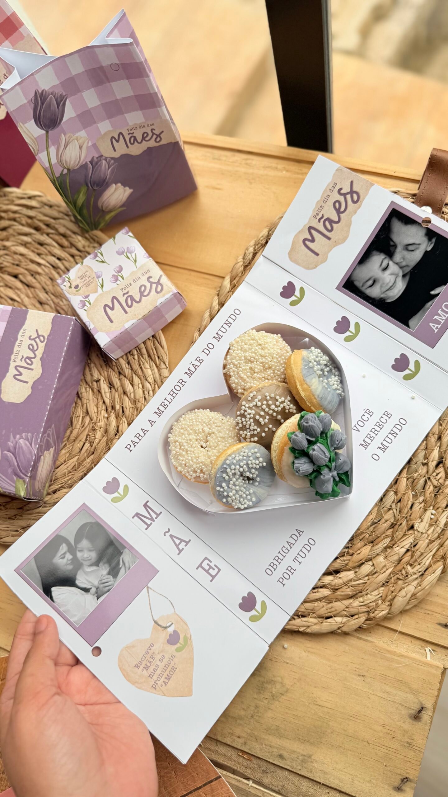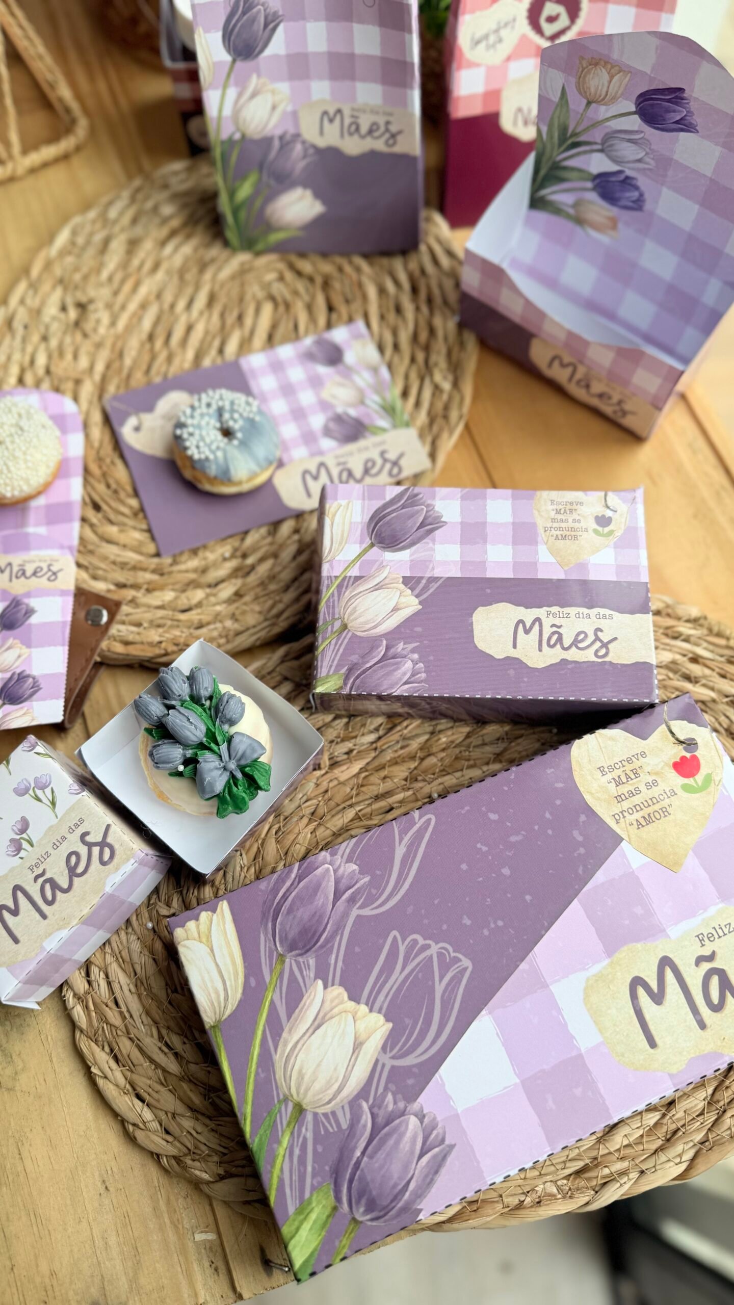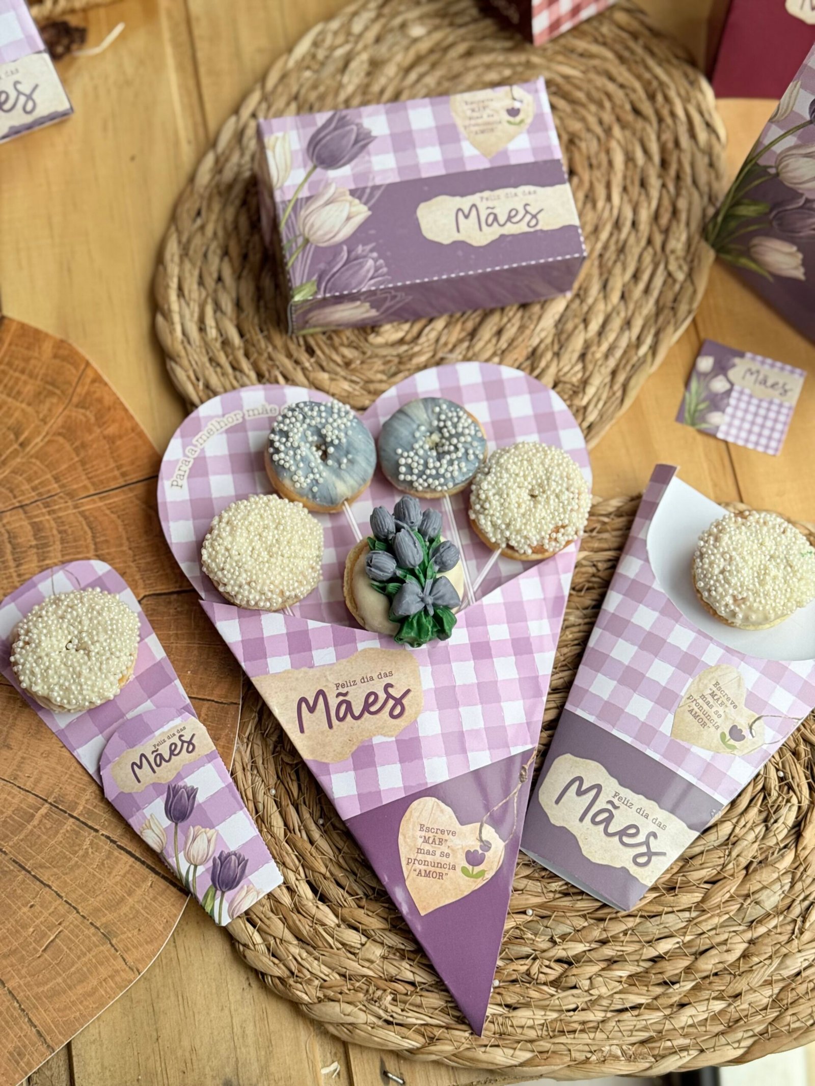 - Caixa para 1, 2, 4, 6 e 8 cake donuts ou doces